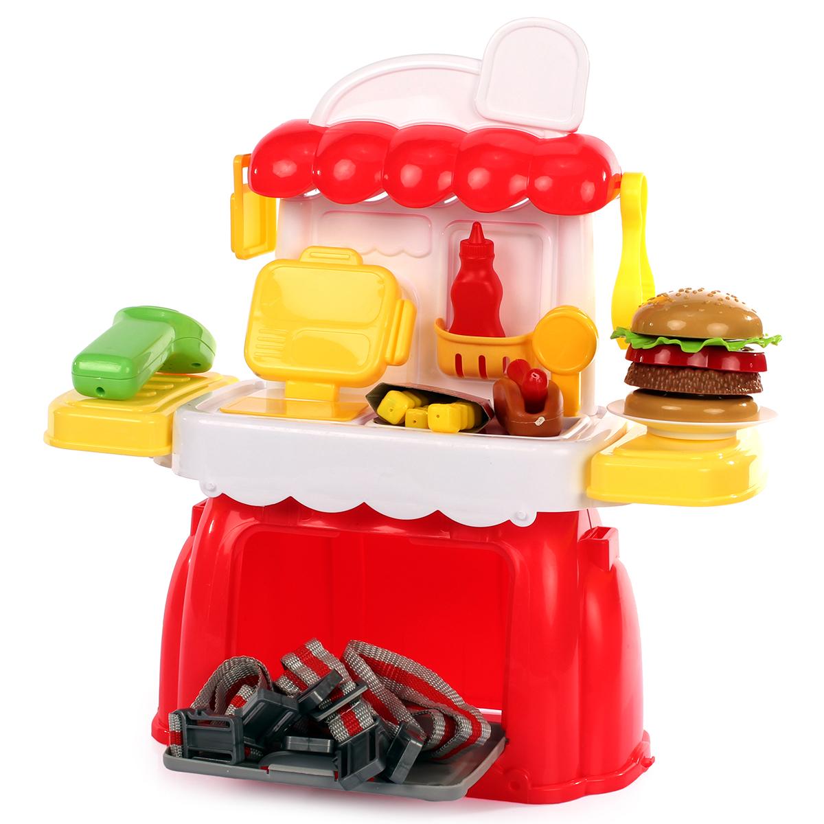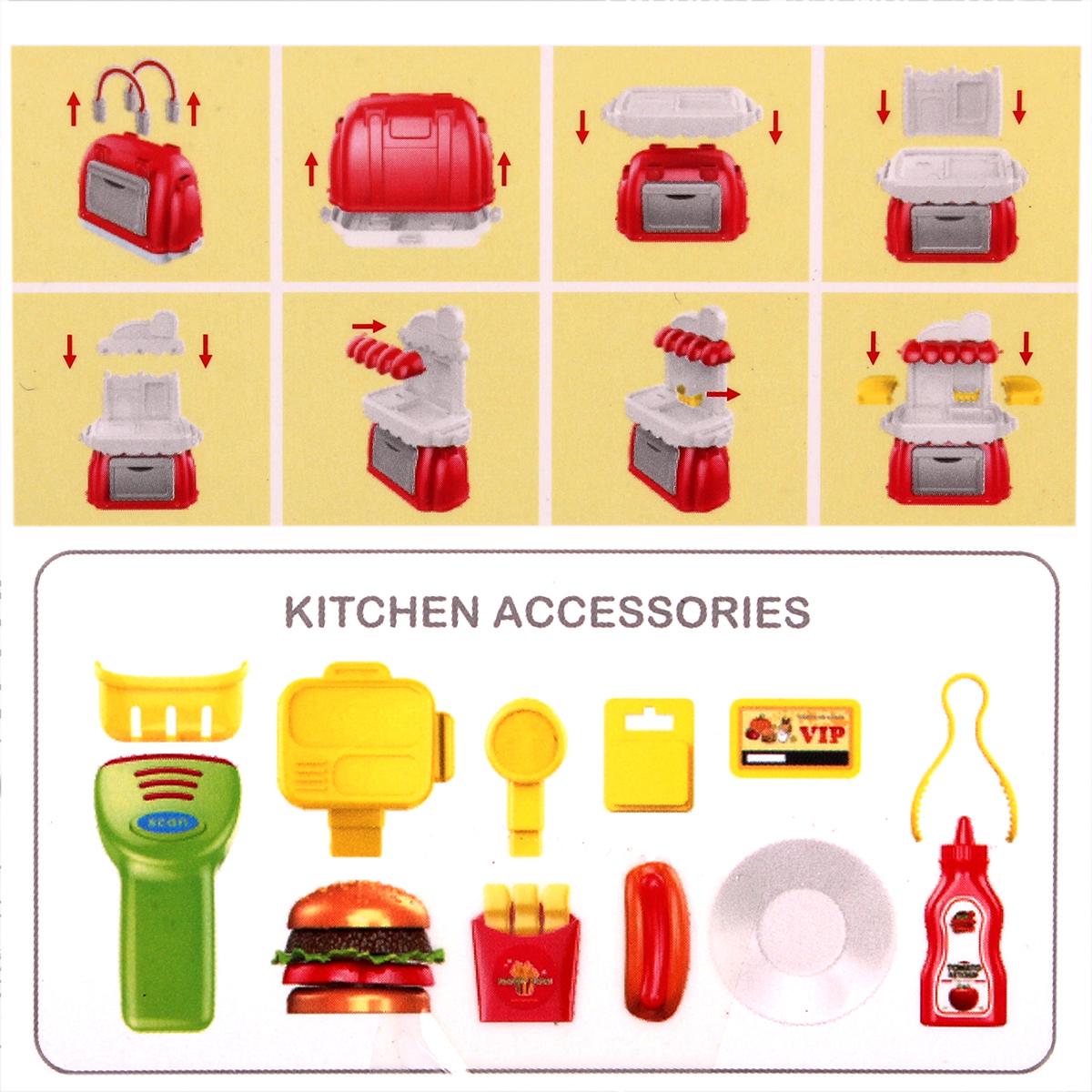 Игровой модуль кухня-чемодан «W839А», красный, желтый, зеленый, 30+ аксессуаров, складной дизайн