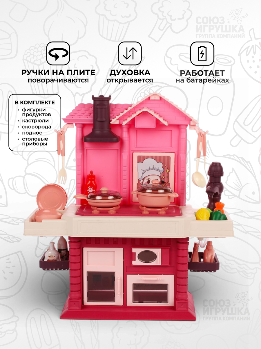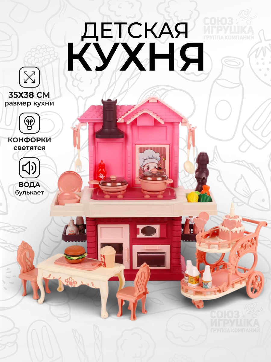 Кухня изготовлена из качественного пластика размером 35х15х38 см, что делает её удобной для игры как дома, так и в детском саду. Яркий дизайн в розово-белых тонах привлечет внимание каждой маленькой хозяюшки.