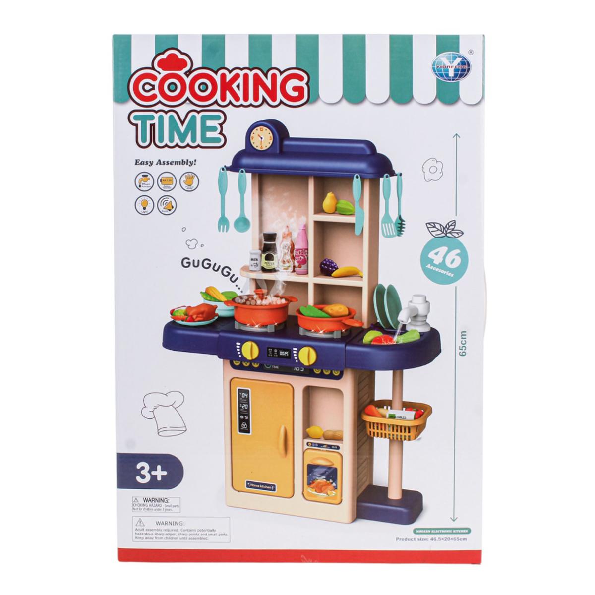 Погрузите ребёнка в увлекательный мир кулинарии с детским игровым модулем «Cooking Time». Эта реалистичная кухонная станция оснащена плитой, духовкой, мойкой, полками и корзиной для хранения, а также включает 46 разнообразных аксессуаров — от посуды до муляжей продуктов. Высота конструкции 65 см, что удобно для комфортной игры и соответствует росту дошкольников.