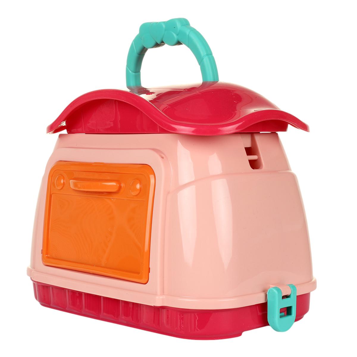 Имитация профессиональной косметички с зеркалом, расчёсками, заколками и декоративными элементами. Все детали выполнены из прочного пластика в розово-фиолетовой гамме, устойчивой к выцветанию. Размеры столика (31,5×24×13,4 см) оптимальны для детских рук.