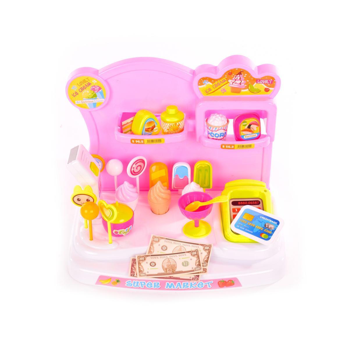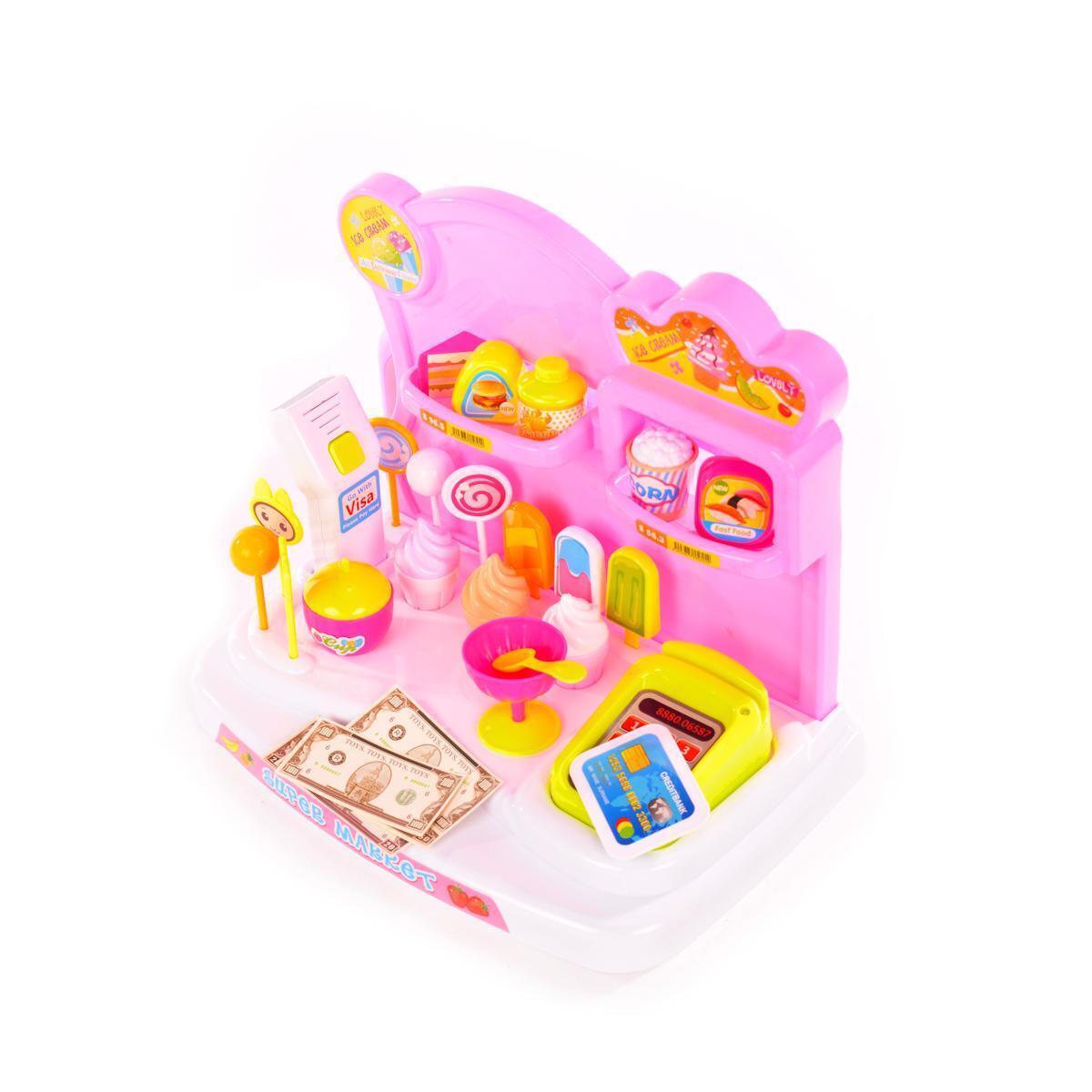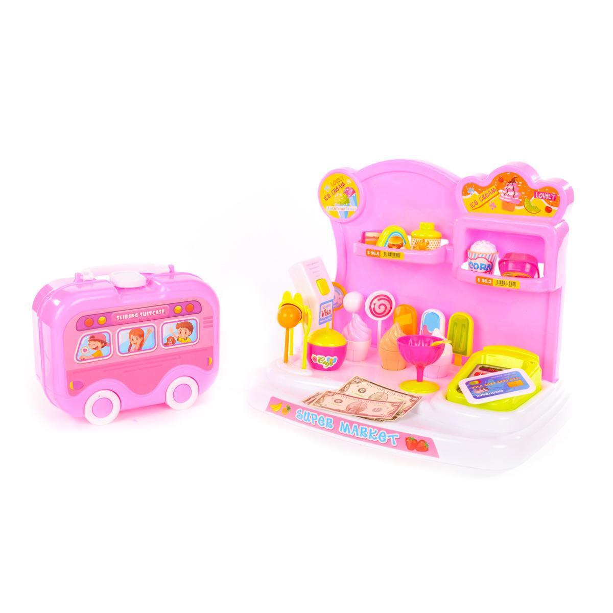 Игровой набор супермаркет с подсветкой и звуком, 18 аксессуаров, чемодан-машинка 46х32х9см, розовый