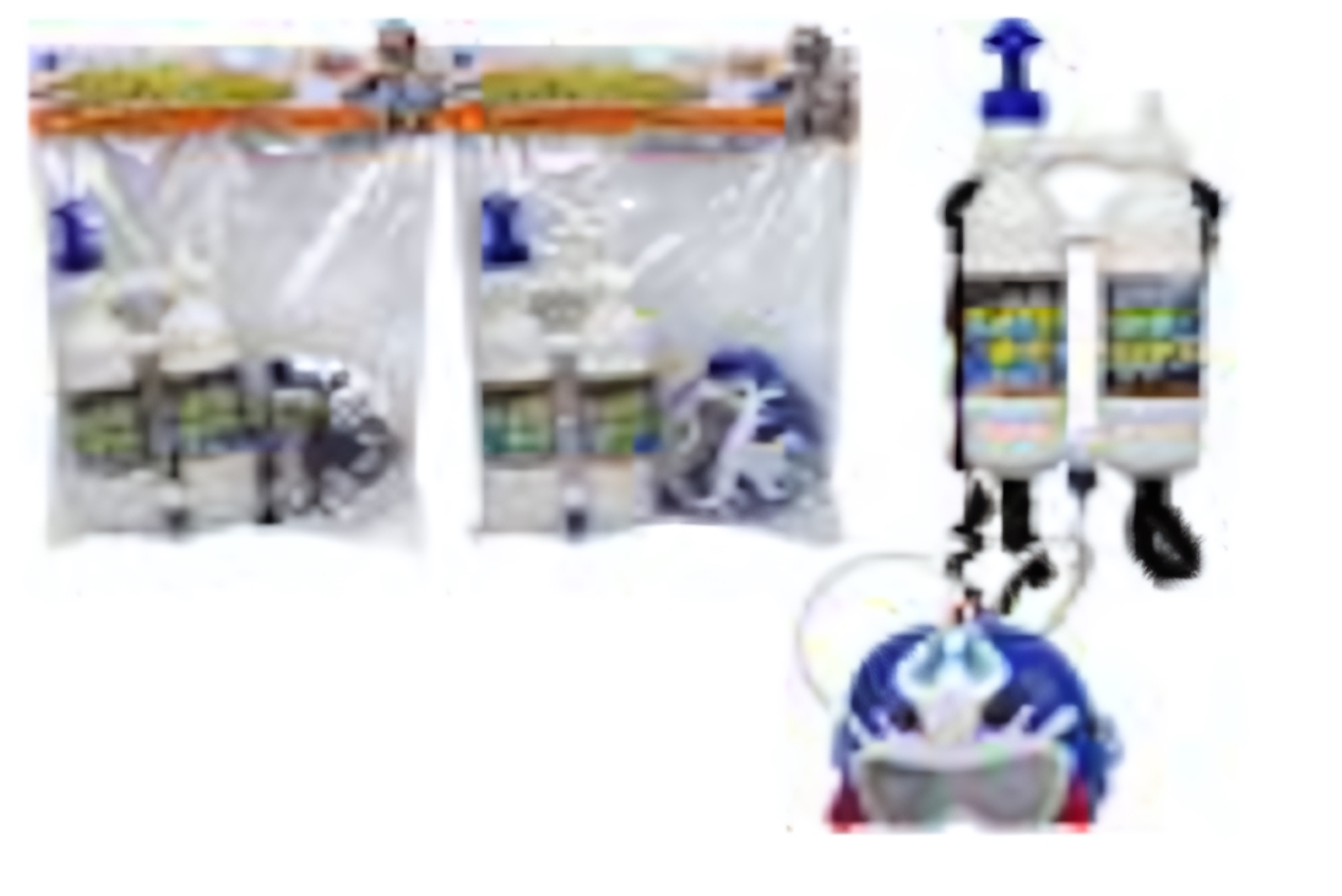 - В комплекте: защитный шлем с очками, рюкзак-помпа для воды, соединительный гибкий шланг.