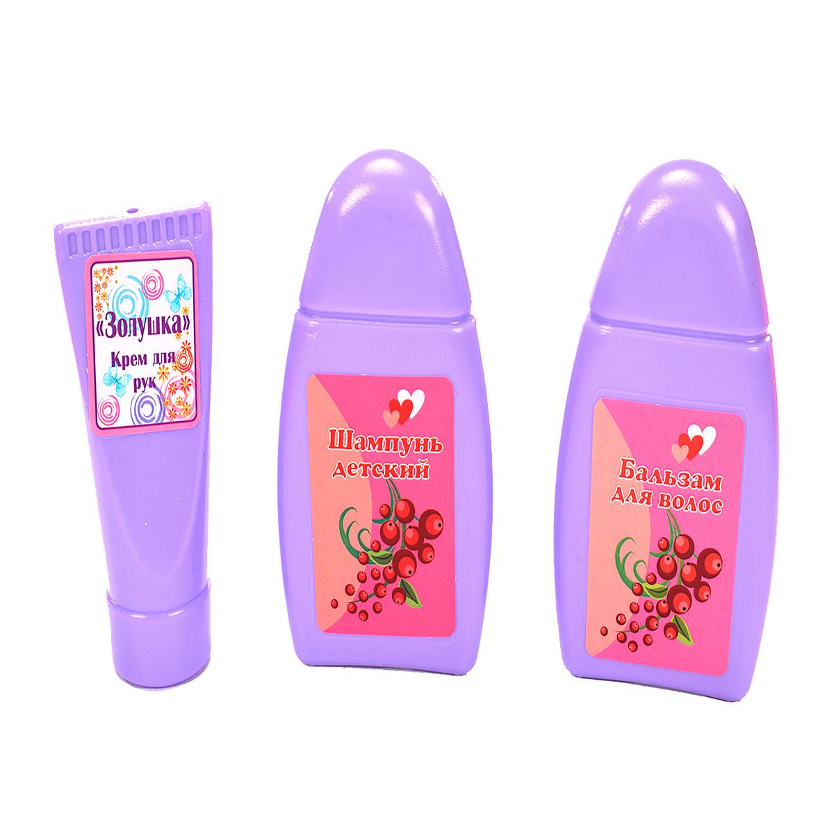 - Косметика: бутафорские флаконы шампуня, бальзама и крема с яркими этикетками