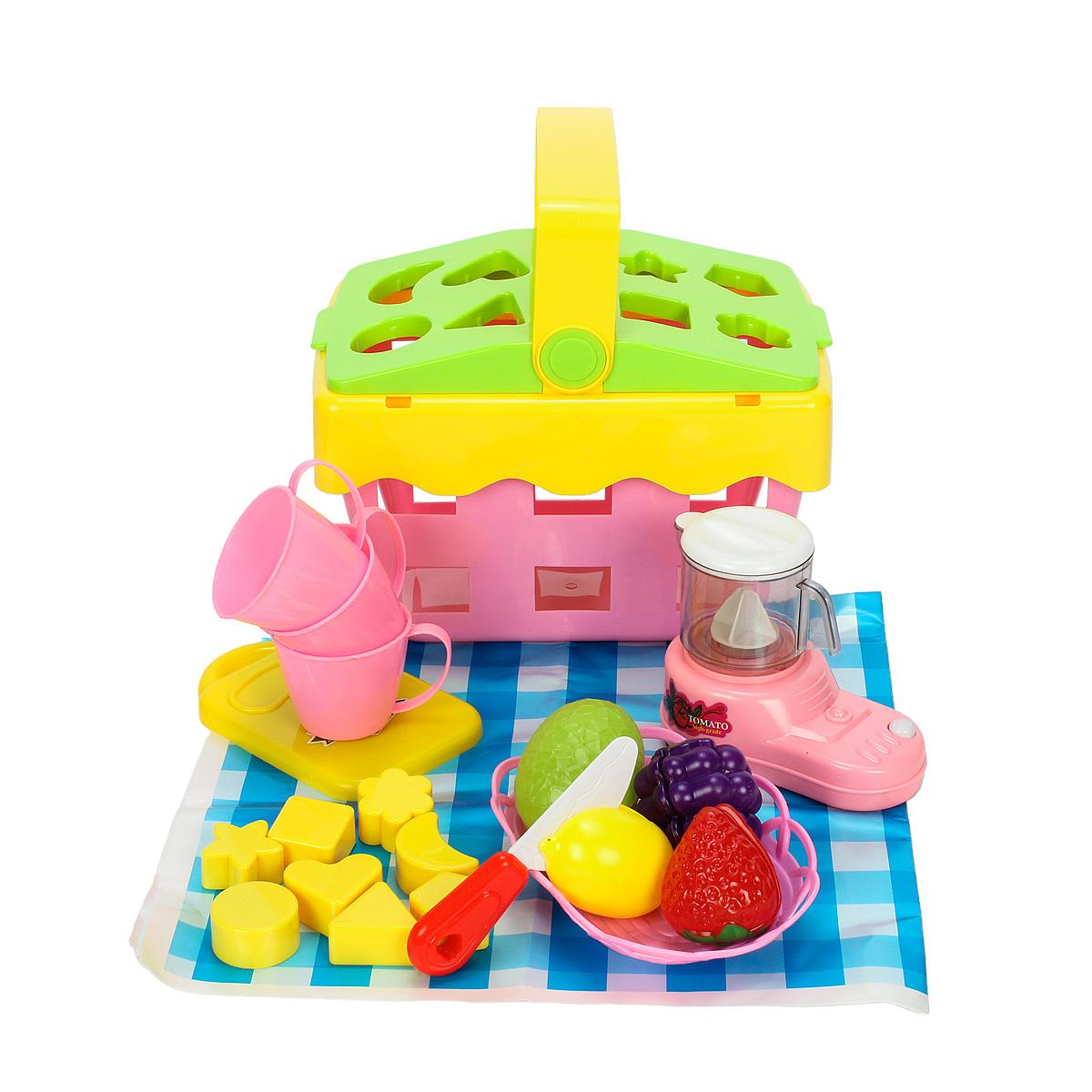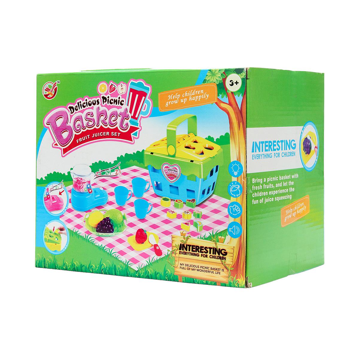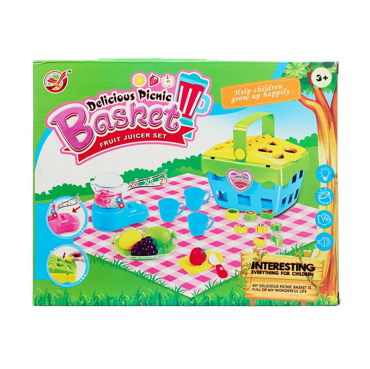 Игровой набор 'Пикник' для девочек: корзина, посуда, миксер с подсветкой, пластик, 15 предметов