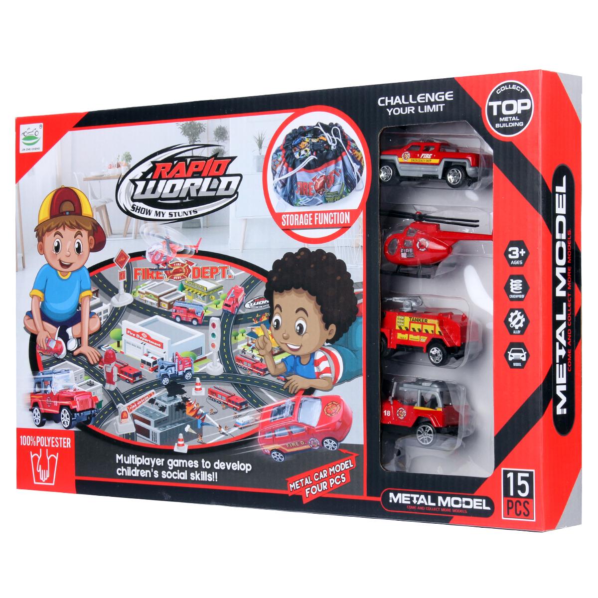 Игровой набор "Rapid World", 15 элементов, коврик 39х24.5см, машинки металлические