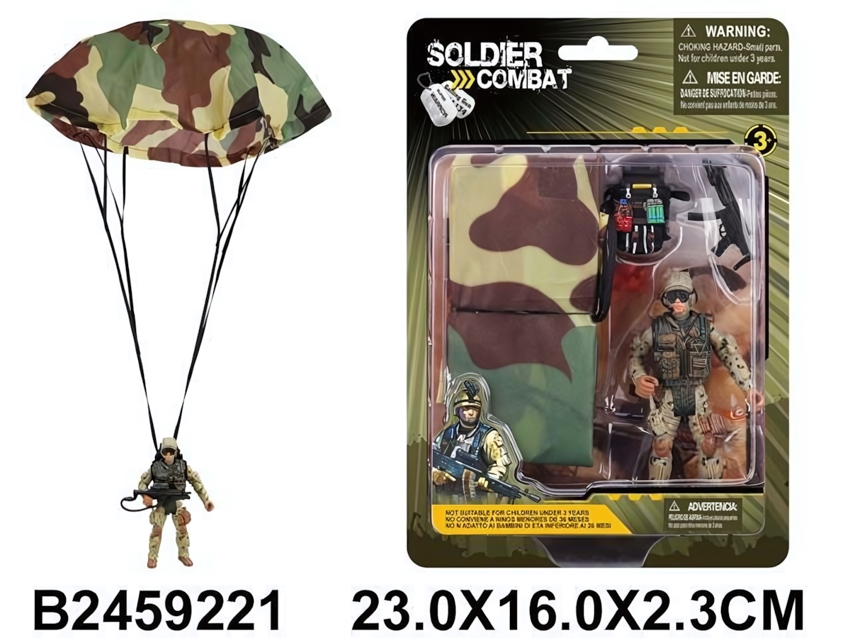 Этот игровой набор станет идеальным выбором для мальчиков, которые любят военные истории и приключенческие сюжеты. В комплект входит детализированная фигурка солдата со снаряжением, автоматом и реалистичным парашютом.