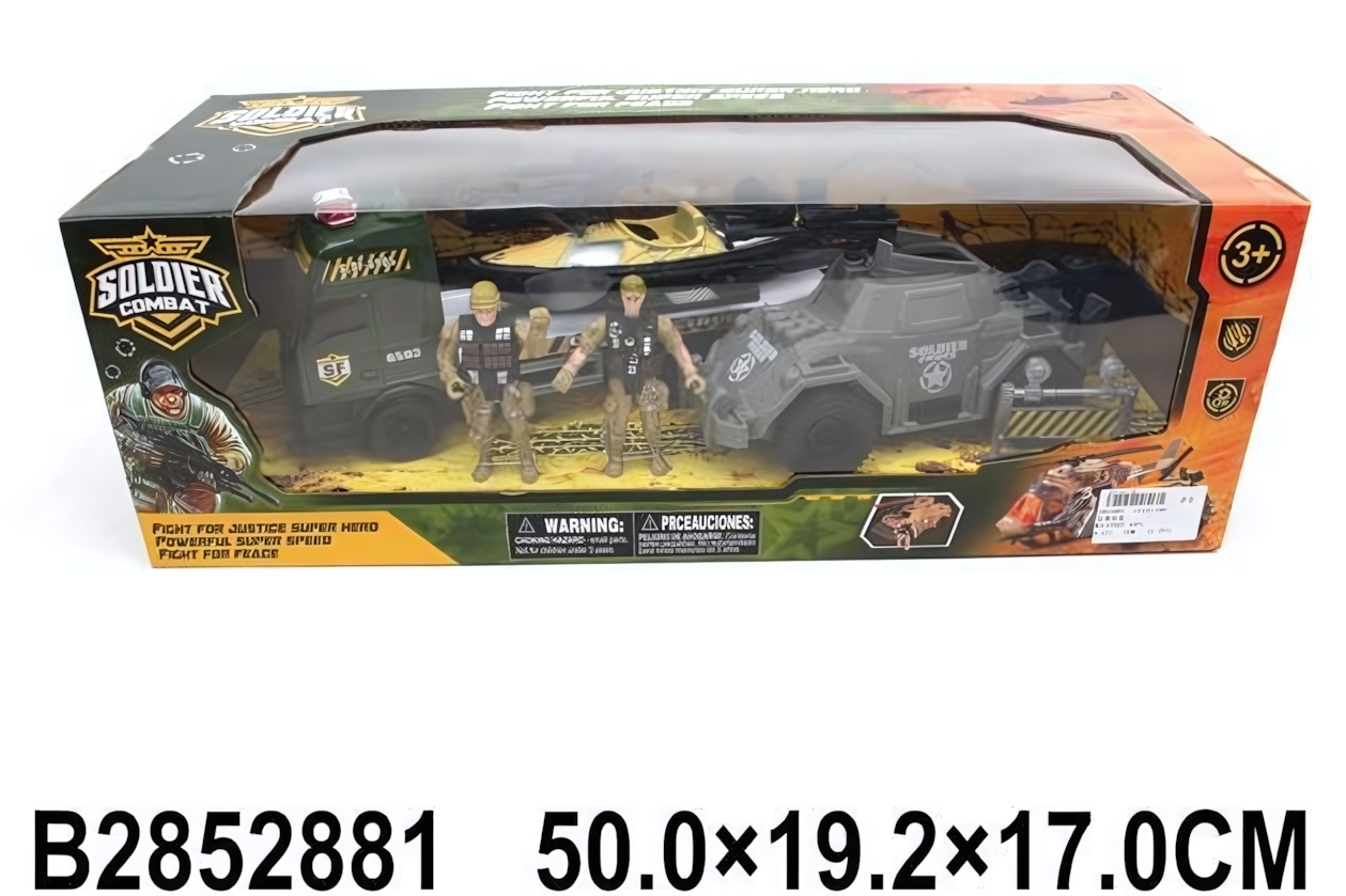 Комплектация: 2 фигурки солдат, 2 военные машины