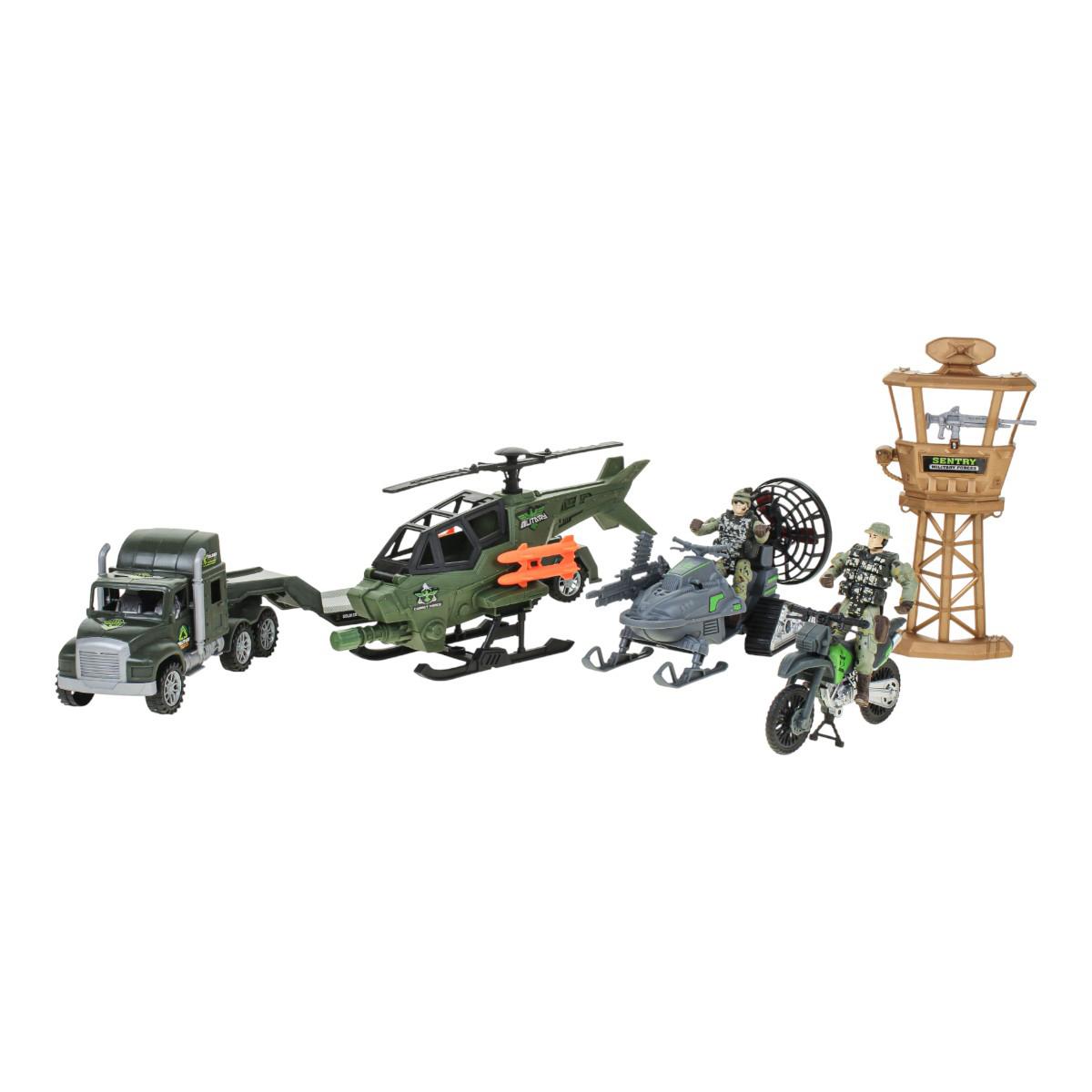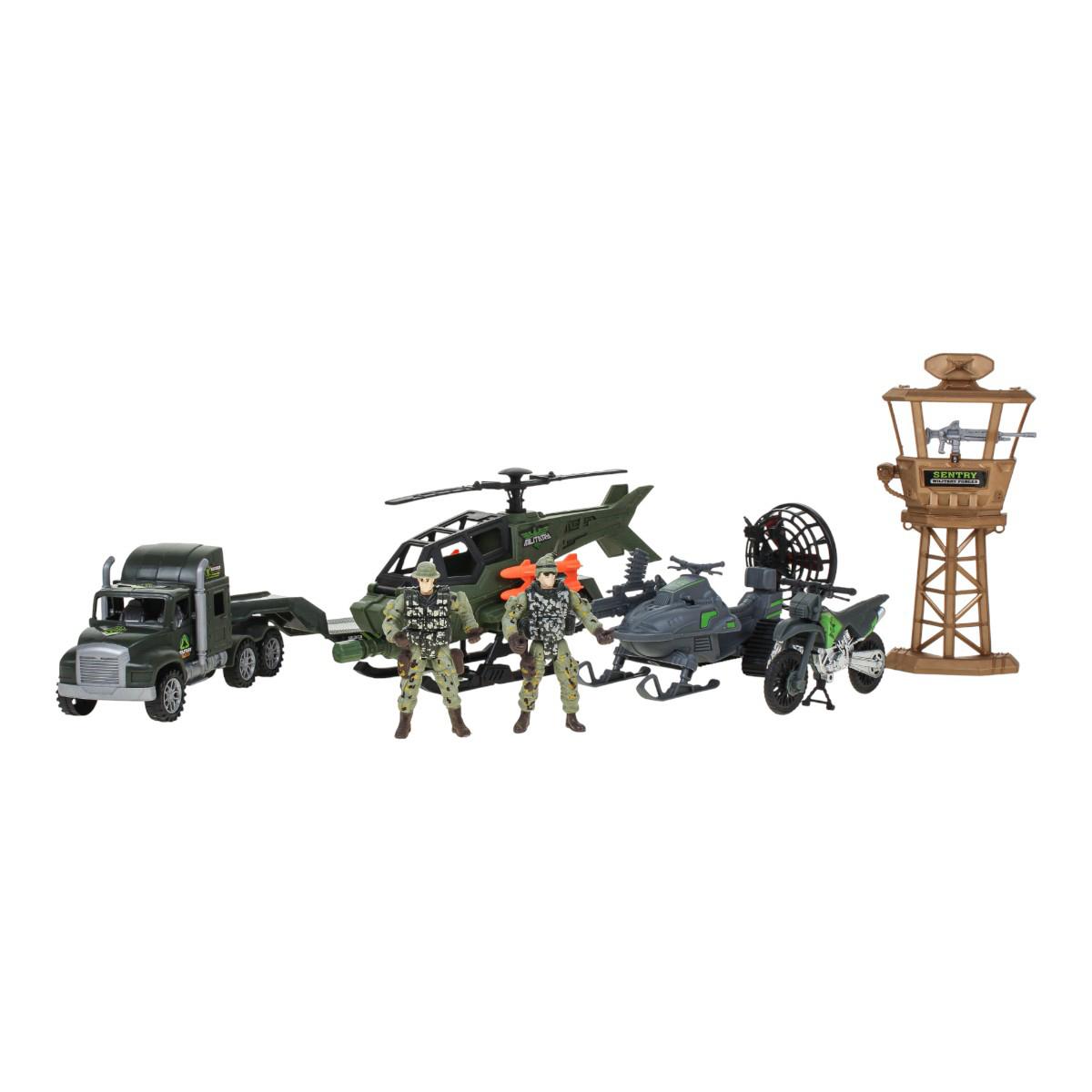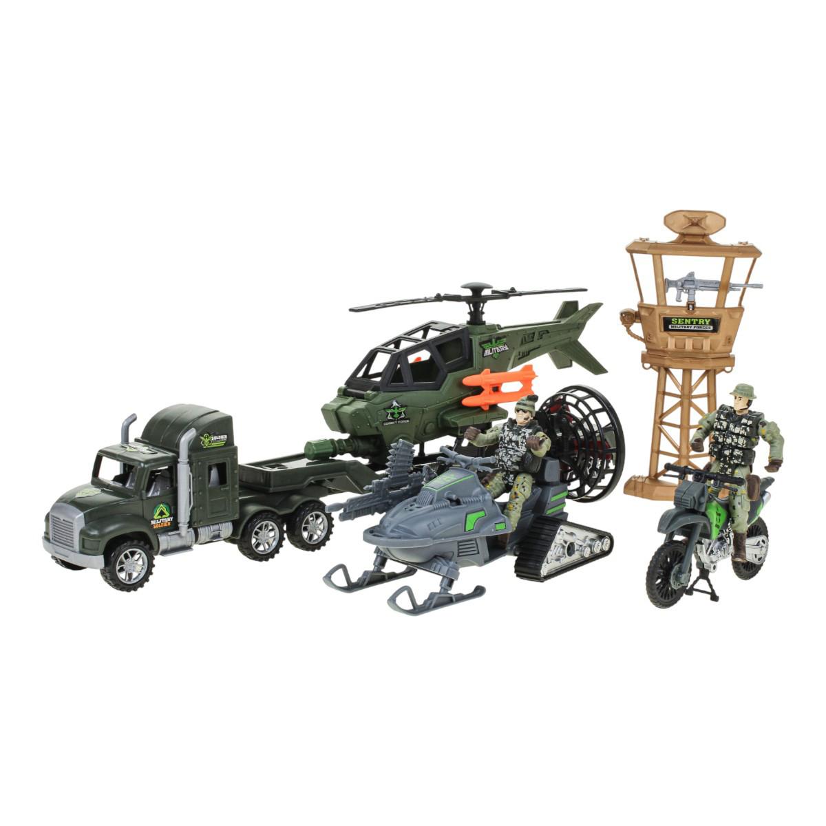 Игра с солдатиками и военной техникой — это классика, которая никогда не устаревает. С этим комплектом можно разыграть десятки сценариев: от охраны секретного объекта на вышке до проведения спецоперации с вертолетом и перевозки техники на трейлере. Все элементы выполнены из прочного, безопасного пластика, устойчивого к активным детским играм.