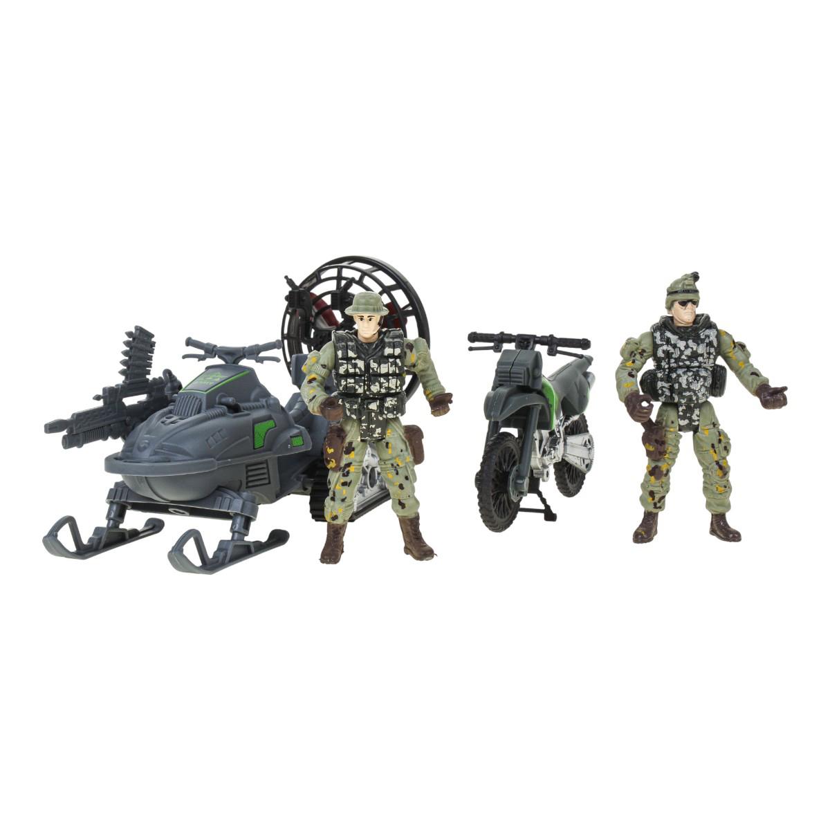 - 2 фигурки солдат в детализированной военной форме и экипировке.