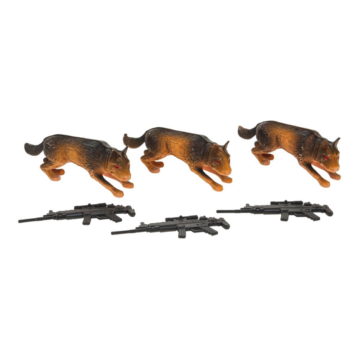 - 3 фигурки служебных собак в коричнево-чёрной окраске, готовых к выполнению заданий