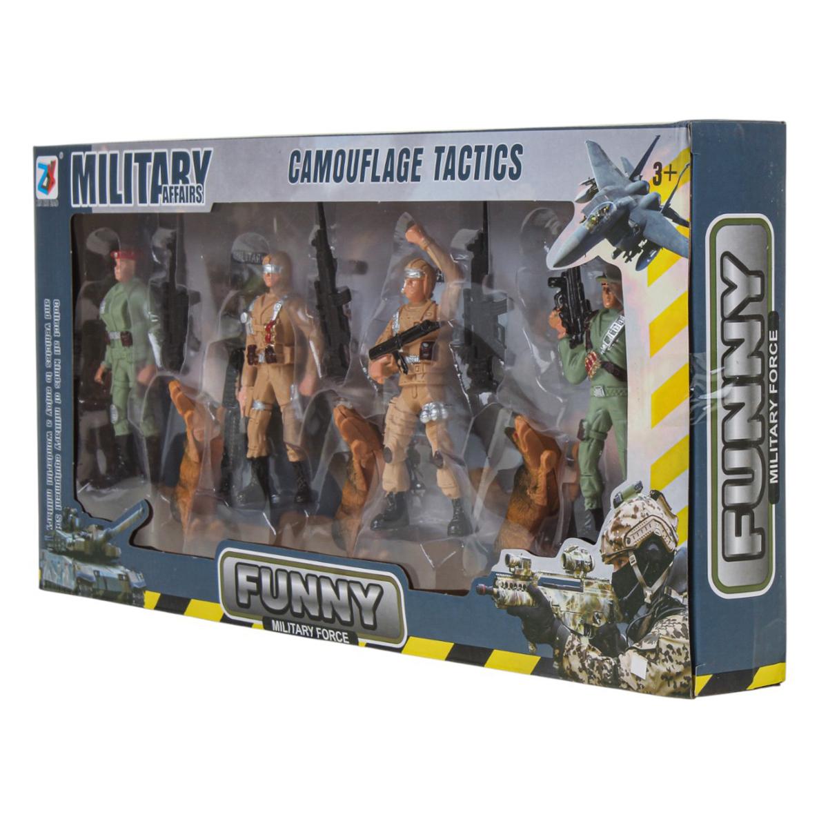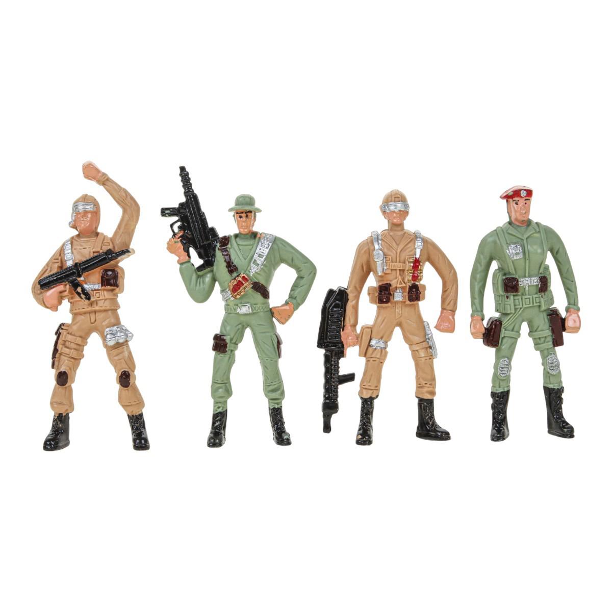 - 4 фигурки солдат спецслужбы в детализированной военной форме разных расцветок (зелёная, бежевая, светло-зелёная)