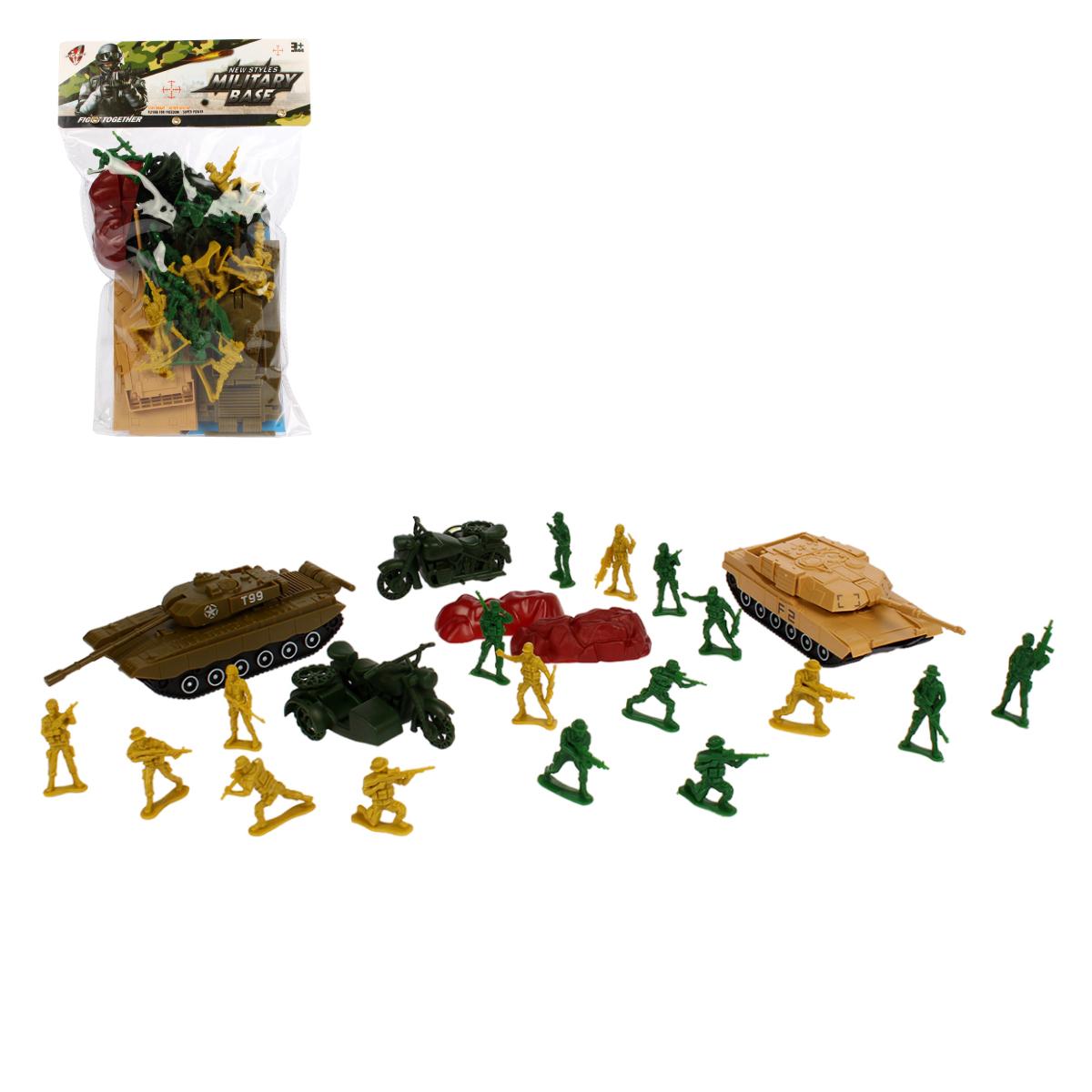 Игровой набор «Military Base»: 20 солдатиков, 2 танка, 2 мотоцикла, пластик, 18х28х7см, для стратегических игр