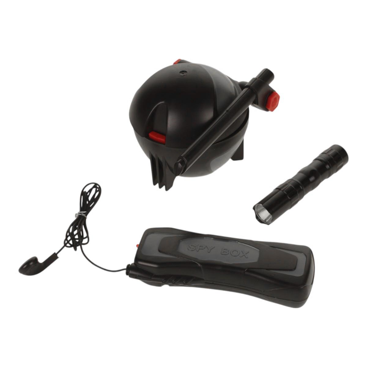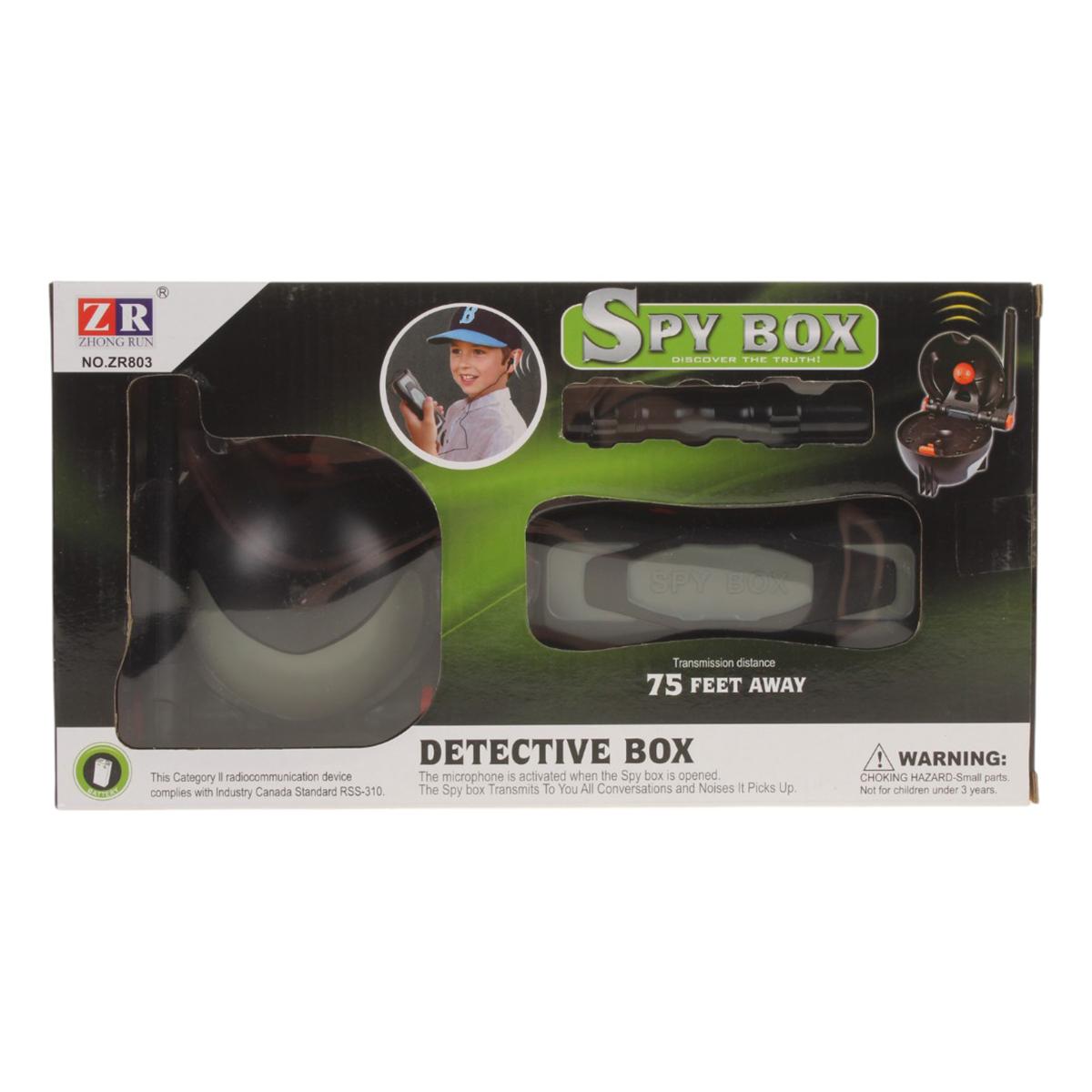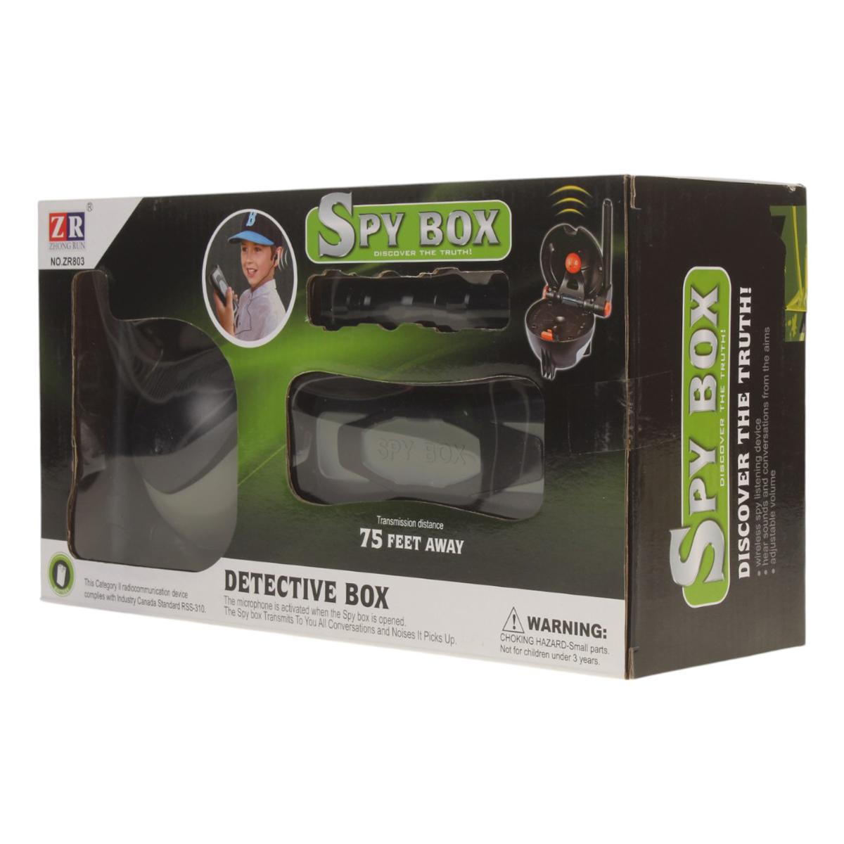 Игровой набор включает в себя шпионскую коробку, фонарик и беспроводной приемник с наушником. Коробка устанавливается в комнате, где ведется наблюдение, и передает каждое слово преступника обратно на приемник на расстоянии до 25 метров в прямой видимости. Это позволяет вашему ребенку не только играть, но и учиться быть внимательным и осторожным, как настоящий шпион.