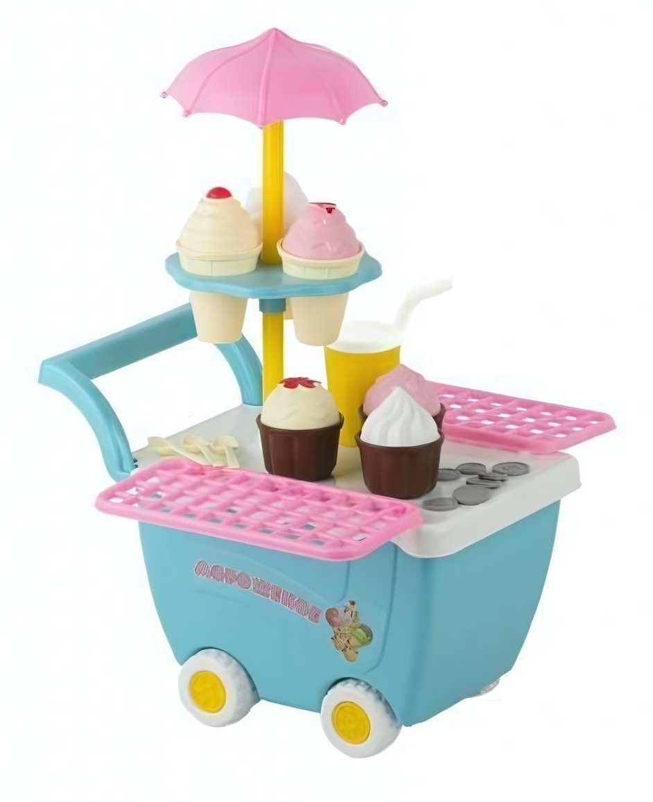 Игровой набор "Тележка с мороженым", пластик, 32*19*24см, цвет голубой/розовый