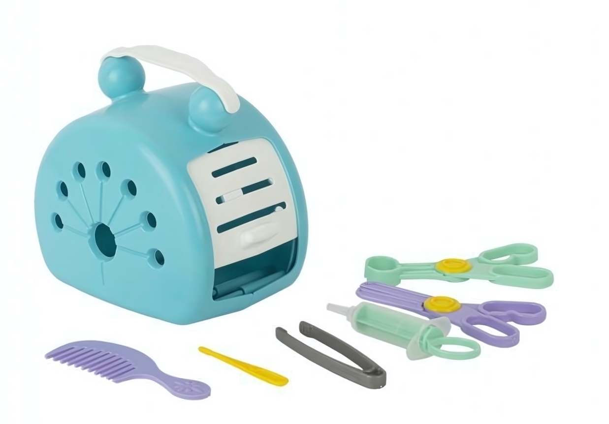 Игровой набор включает в себя все необходимые инструменты для ветеринара: переноску, расчёску, термометр, пинцет, шприц, ножницы и щипцы. Он идеально подходит для детей от 2 лет, что делает его отличным подарком для малышей, которые любят ролевые игры. Набор поможет развить навыки общения и сотрудничества, когда дети играют вместе.