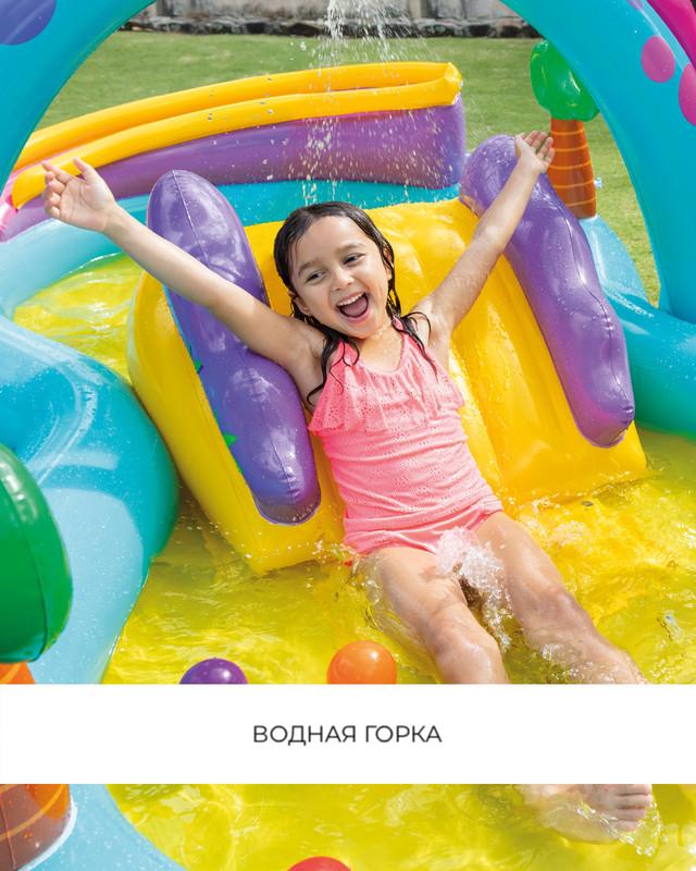 Представьте, как ваш малыш весело проводит время в надувном игровом центре 'Wet Set Collection' от INTEX. Этот красочный комплекс станет настоящим источником радости и развлечений на даче или во дворе.