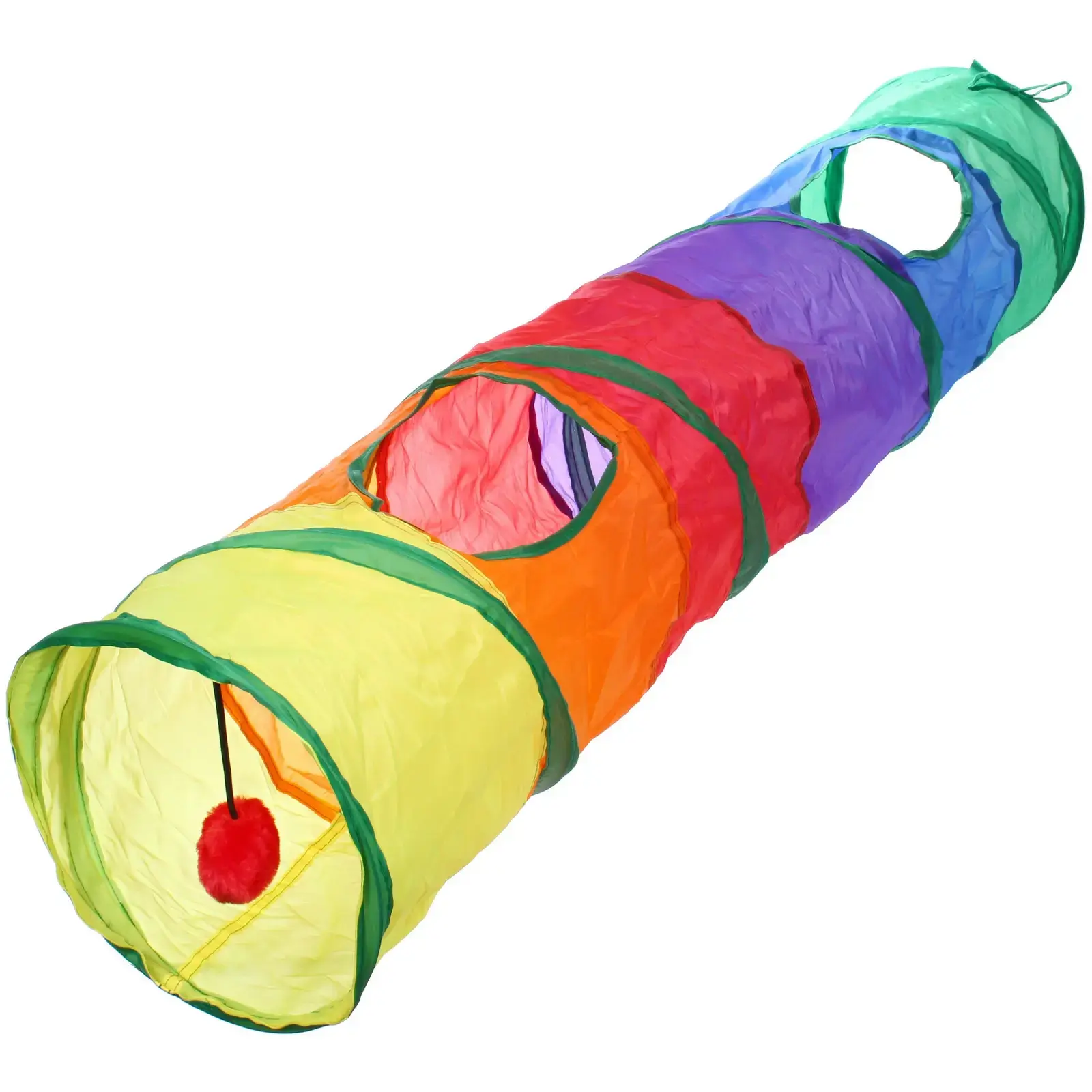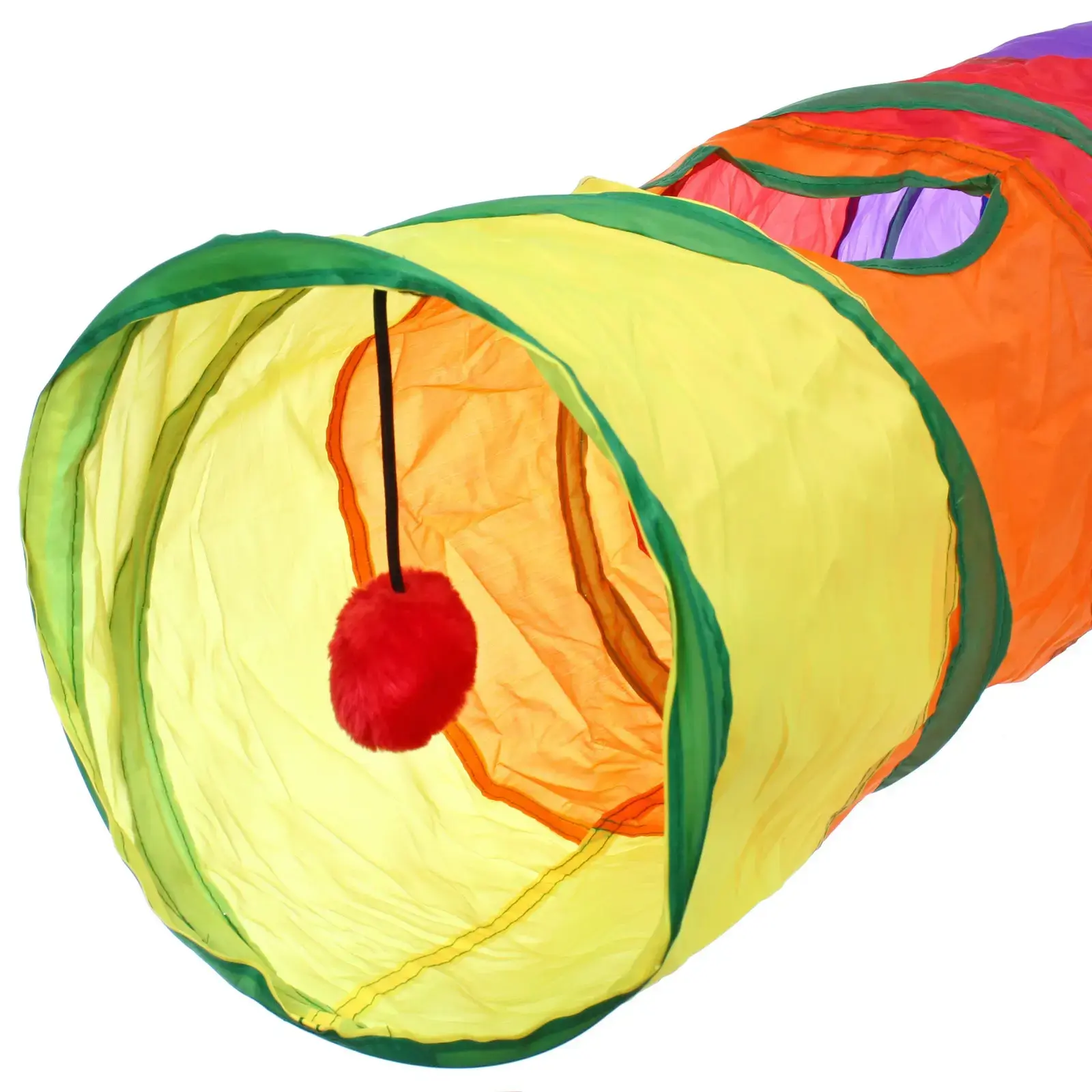 Размеры туннеля составляют 120 см в длину и 25 см в диаметре, что делает его достаточно просторным для комфортной игры. Материал нейлон обеспечивает легкость и прочность, а также простоту в уходе — туннель легко стирается и быстро сохнет. Яркие цвета, такие как желтый, оранжевый, красный и зеленый, делают его привлекательным как для животных, так и для их владельцев.