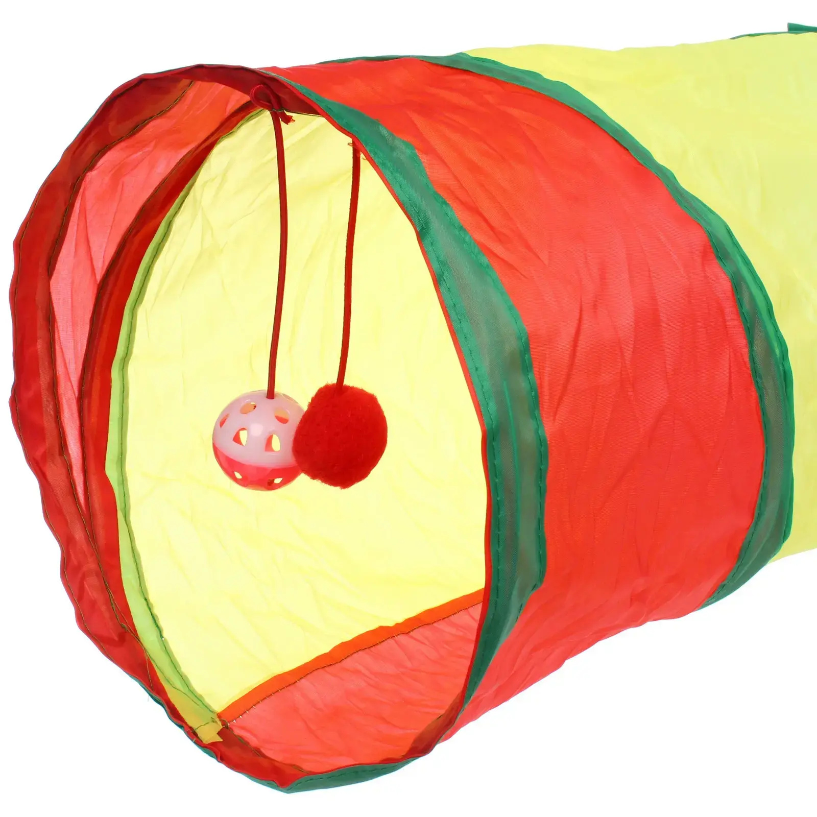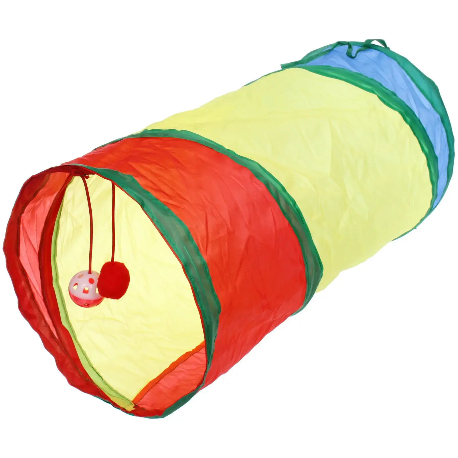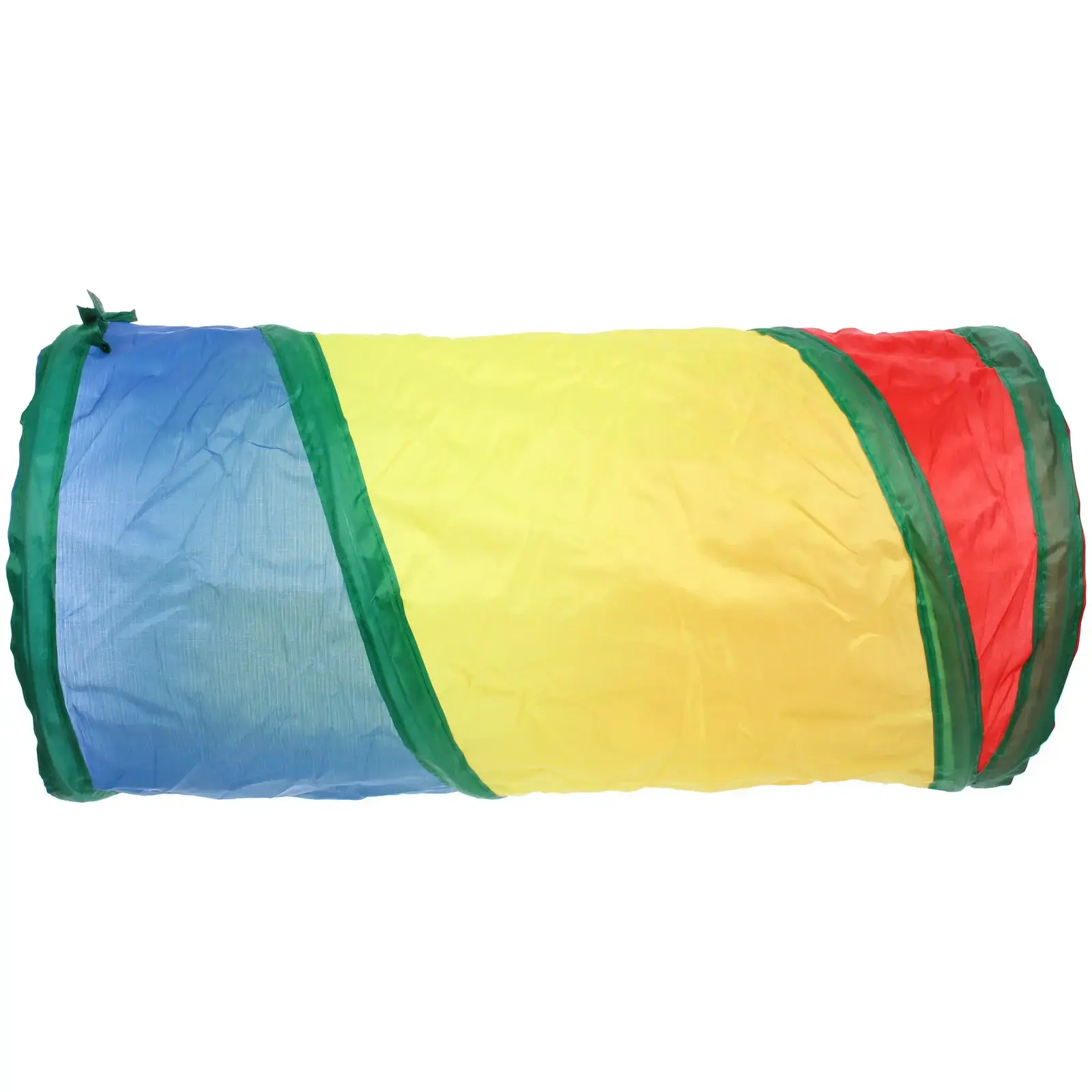 Размеры туннеля составляют 49х26 см, что делает его подходящим для небольших домашних животных. Материал, из которого он изготовлен, легкий и прочный, что гарантирует долговечность и надежность в использовании. Яркие цвета — красный, желтый и синий — добавляют веселья в игры вашего питомца.