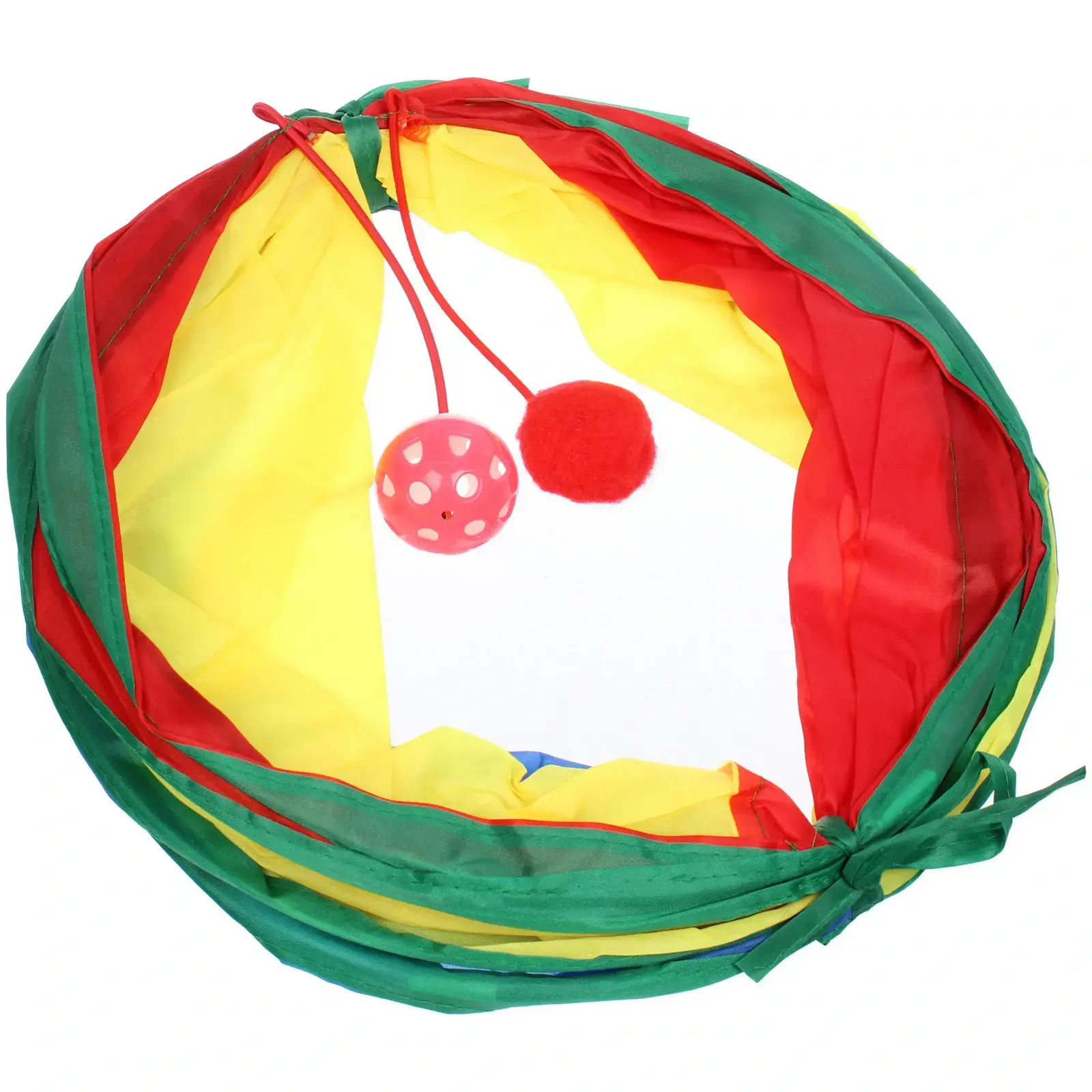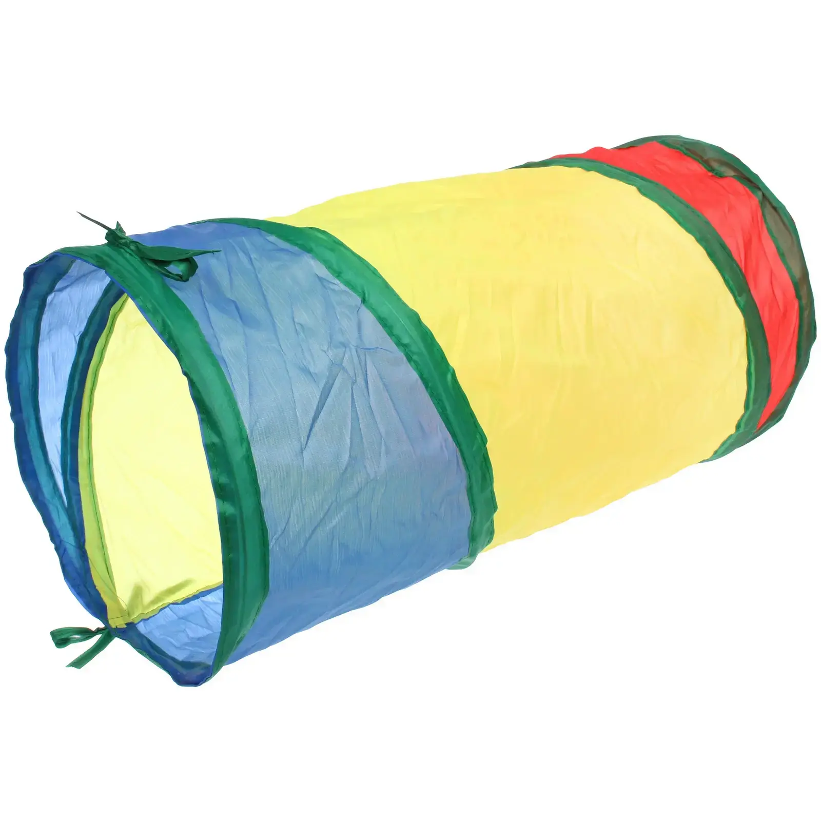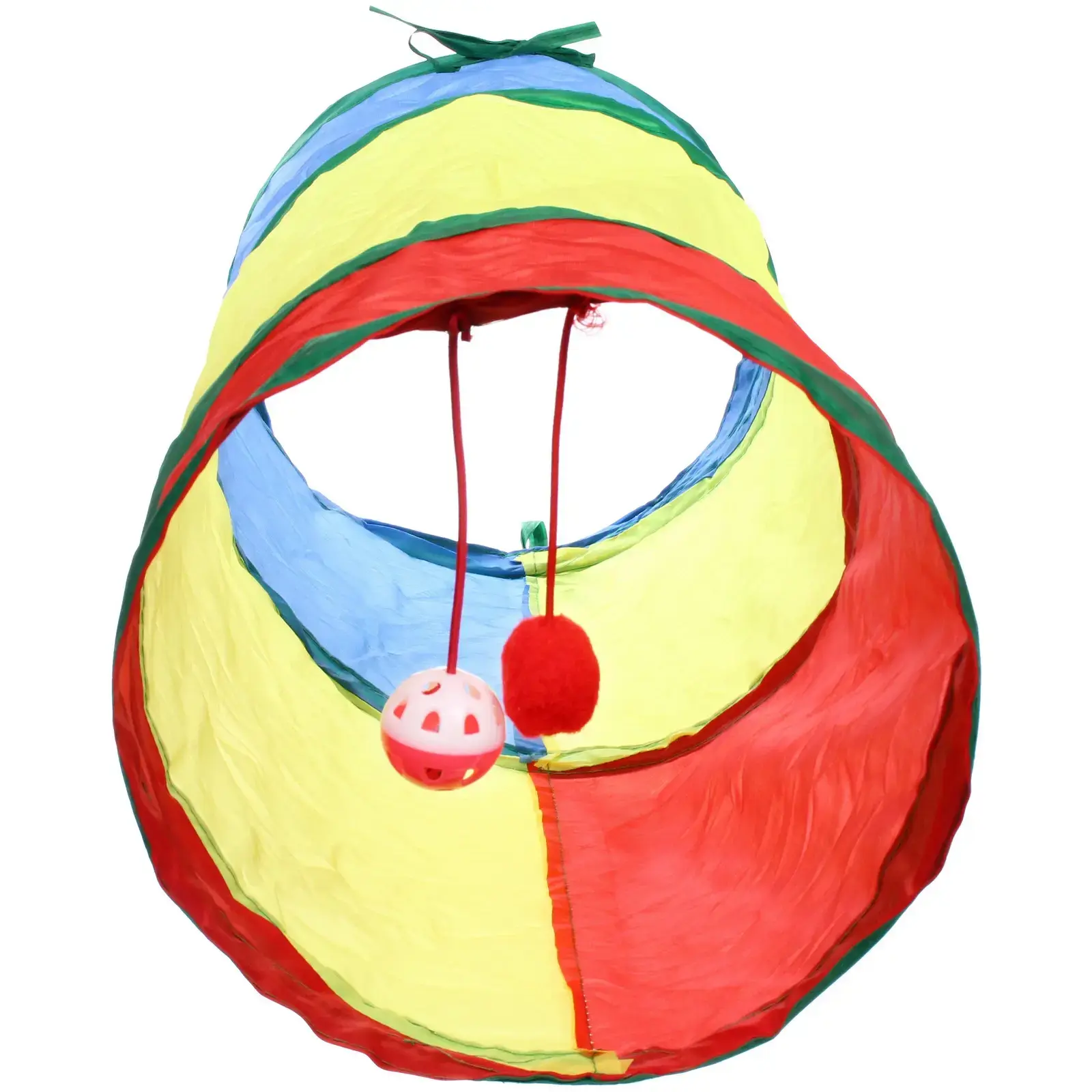 Размеры туннеля составляют 49х26 см, что делает его подходящим для небольших домашних животных. Материал, из которого он изготовлен, легкий и прочный, что гарантирует долговечность и надежность в использовании. Яркие цвета — красный, желтый и синий — добавляют веселья в игры вашего питомца.