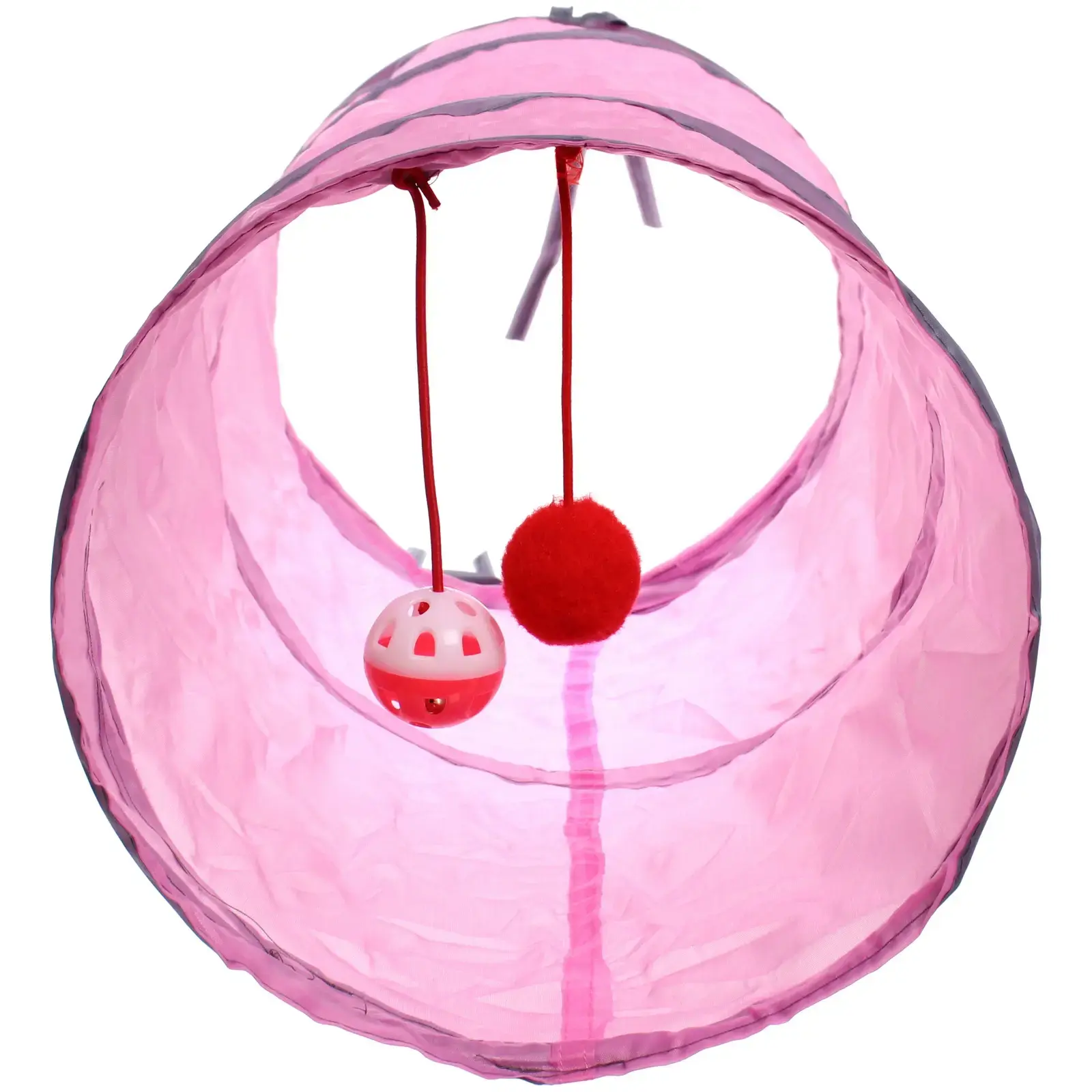 Туннель подходит для кошек и собак маленьких пород, предоставляя им возможность прятаться, играть и исследовать. Внутри туннеля находятся две игрушки: красный помпон и шарик с отверстиями, которые привлекут внимание вашего питомца и активизируют его охотничьи инстинкты. Туннель легко складывается, что делает его удобным для транспортировки на дачу или в поездку.