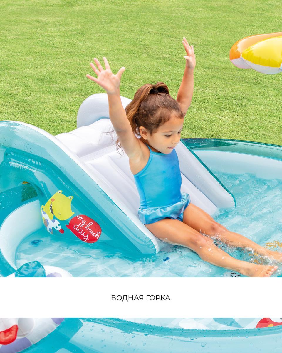 Представьте, как ваш малыш весело проводит жаркий день, играя в надувном игровом центре с горкой и зонтом. Этот яркий комплекс от известного бренда INTEX создан для настоящих водных приключений.