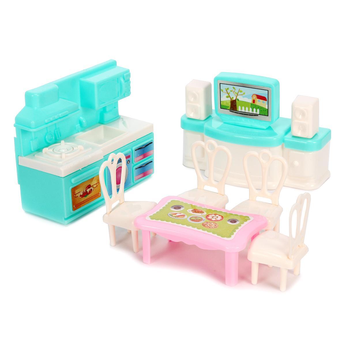 Сочетание розовых, голубых и белых элементов создает жизнерадостную атмосферу. Реалистичные детали в виде окон с пейзажами, декоративных полок и кухонной утвари развивают внимательность. Съемные элементы мебели позволяют менять планировку по желанию ребенка.