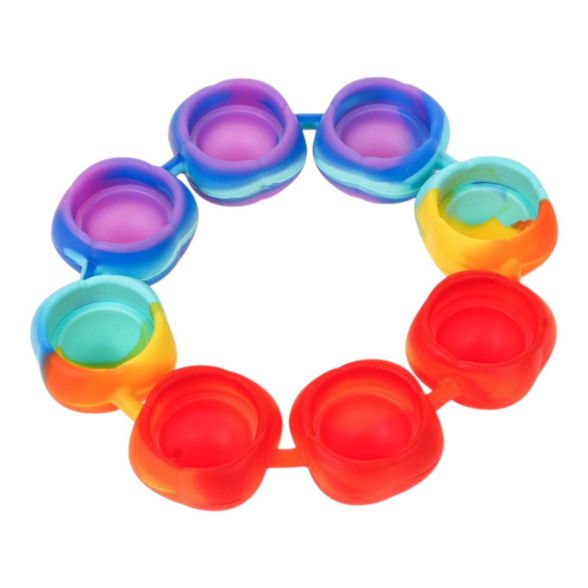 Попит представляет собой круг из восьми соединенных элементов. Нажимайте на силиконовые пузырьки с одной стороны, слышитеCharacteristic щелчок, а затем переворачивайте кольцо, чтобы продолжить игру. Это отличное упражнение для развития мелкой моторики у детей и тренировки усидчивости.