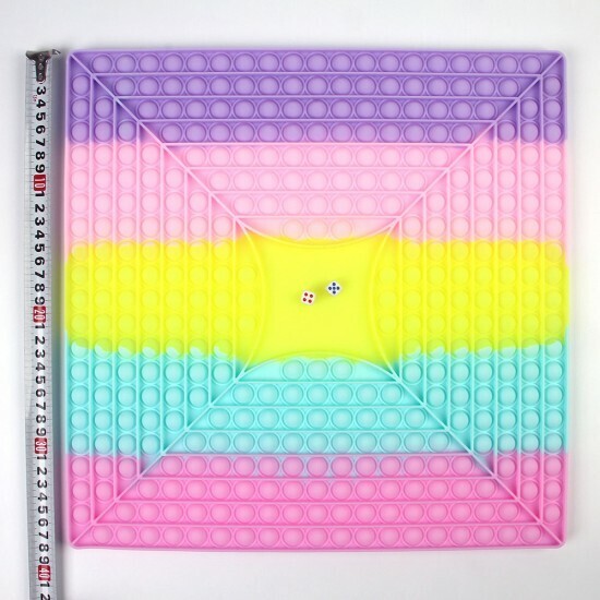 Размер игрушки составляет около 30 см, что делает ее удобной для использования. Она представлена в ярких цветах: фиолетовом, розовом, желтом, голубом и зеленом, что добавляет радости в повседневную жизнь. Игрушка антистресс Pop it — это не только способ расслабиться, но и отличный инструмент для развития моторики у детей.