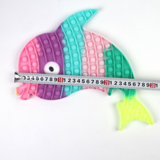 Игрушка имеет размеры около 22-23 см, что делает её идеальной для детских рук. Мягкий силикон позволяет легко сжимать и восстанавливать форму, что делает её отличным антистресс-решением. Попробуйте Pop it Рыбка и убедитесь, как легко можно снять напряжение и поднять настроение!