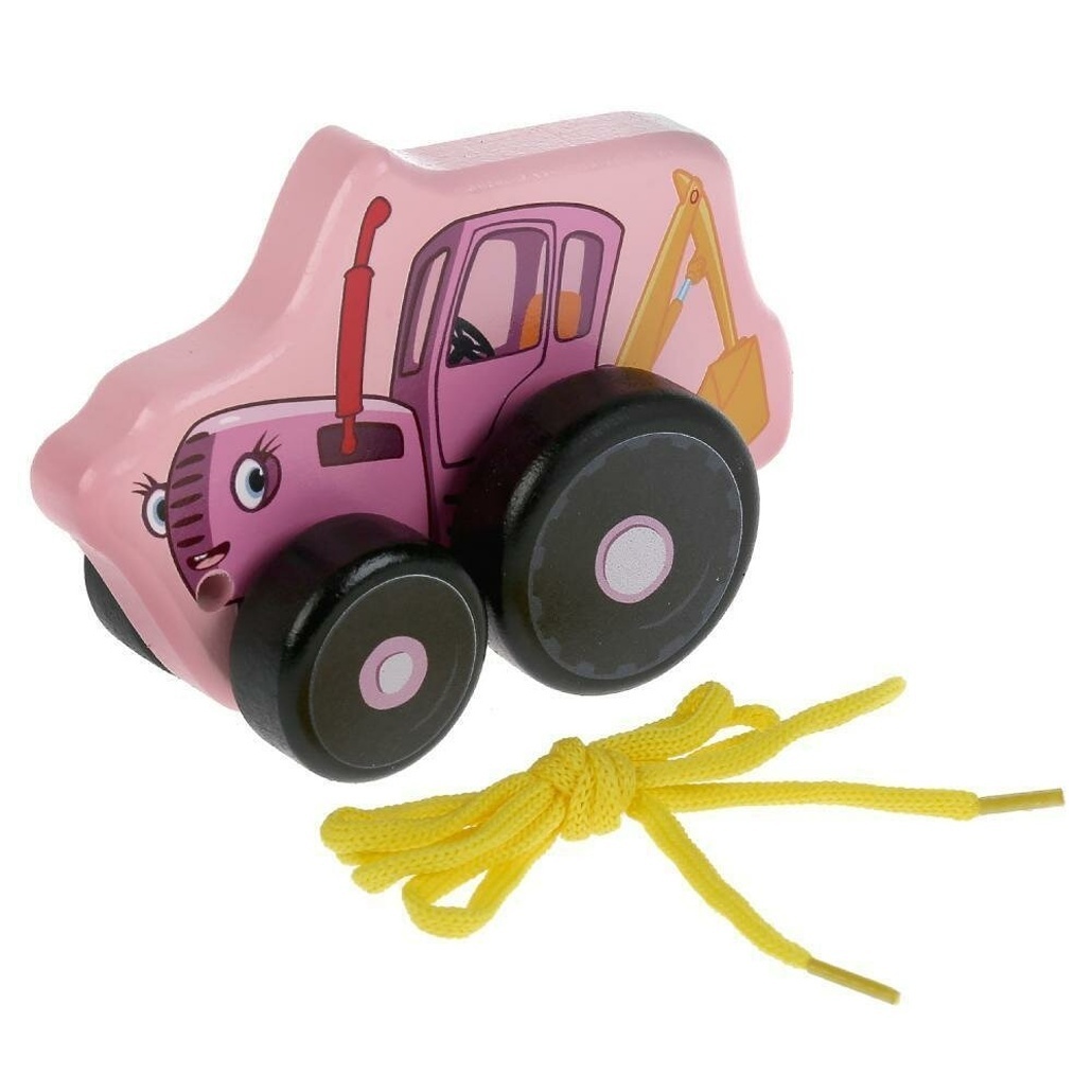 Игрушка-каталка деревянная "Синий трактор МИЛА", 12см, с шнуровкой, для детей