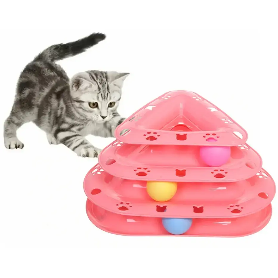 Интерактивная игрушка для кошек «Поймай меня!», 3 уровня с мячами, пластик, розовый, 26х14 см, развивает инстинкты