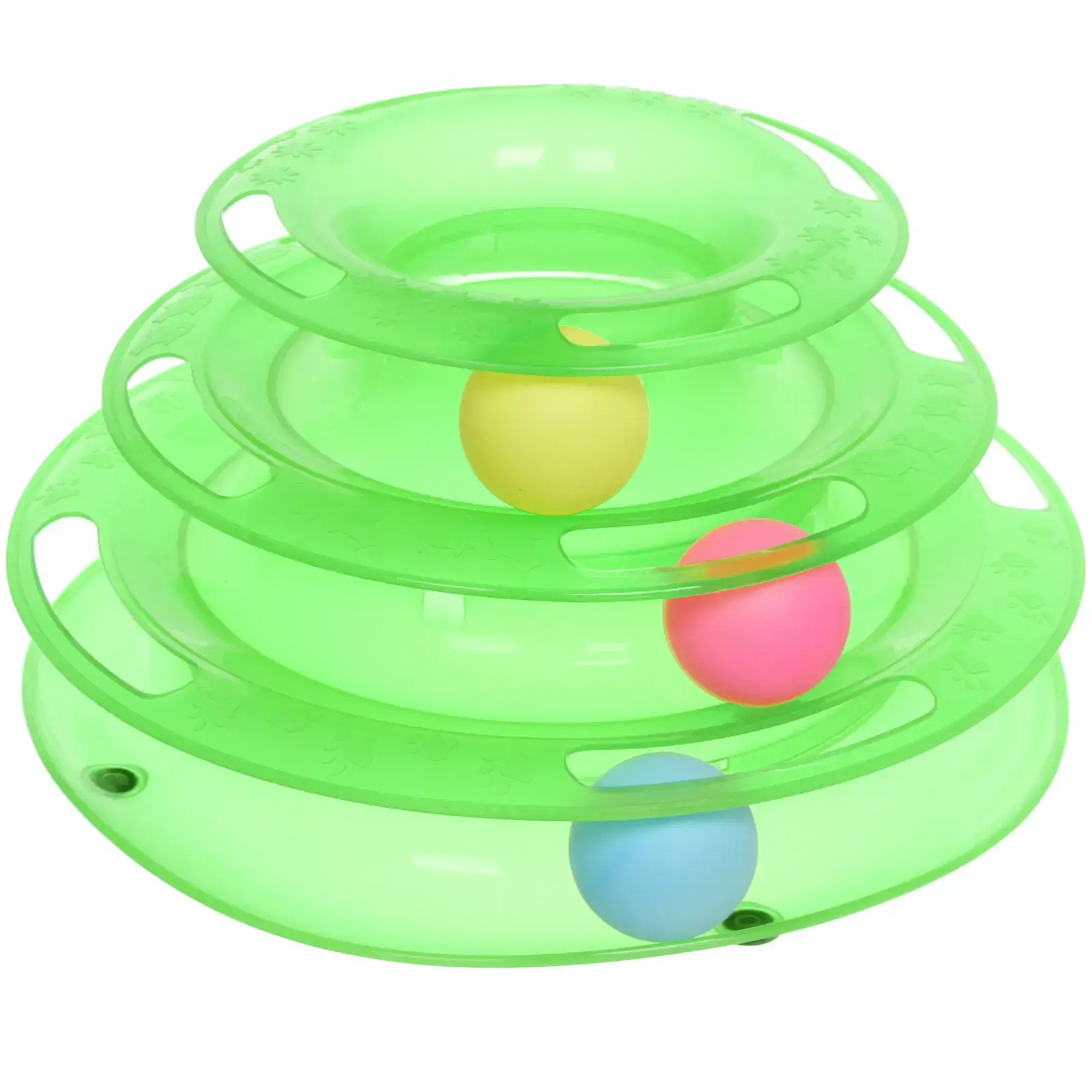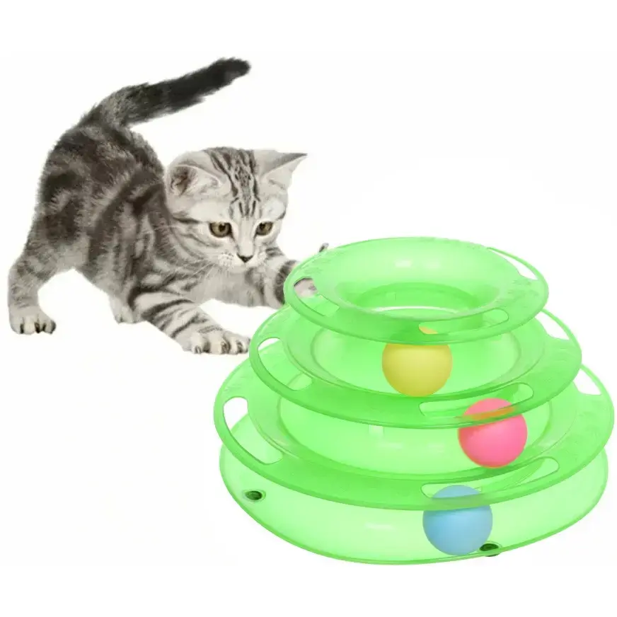 Игрушка представляет собой пирамидку с тремя уровнями и тремя цветными мячиками, которые движутся внутри, привлекая внимание кошки. Благодаря разборной конструкции, игрушку легко хранить и мыть, что делает её практичным выбором для владельцев домашних животных. Она подходит для кошек всех возрастов и размеров, обеспечивая активные игры и развитие.