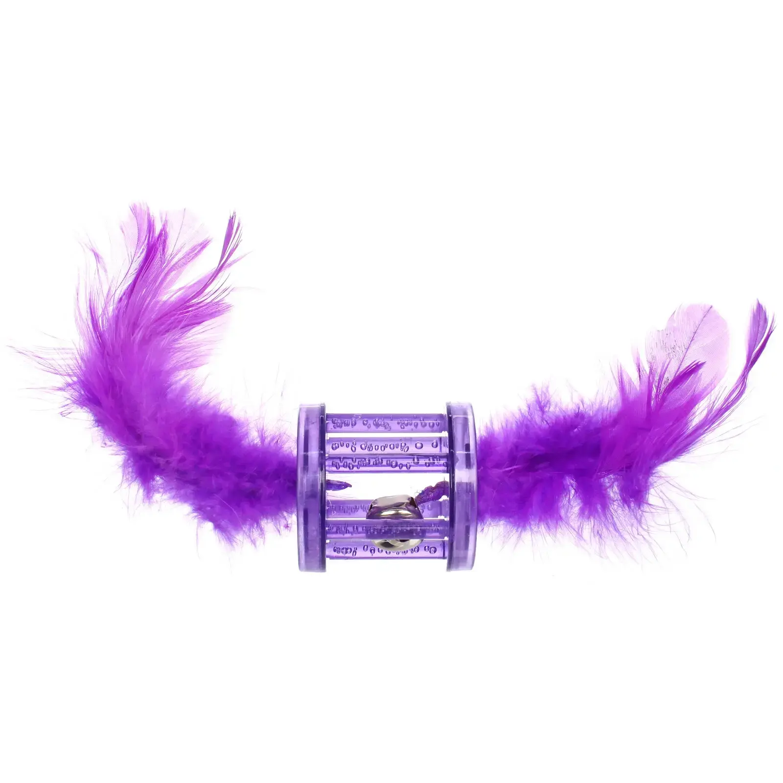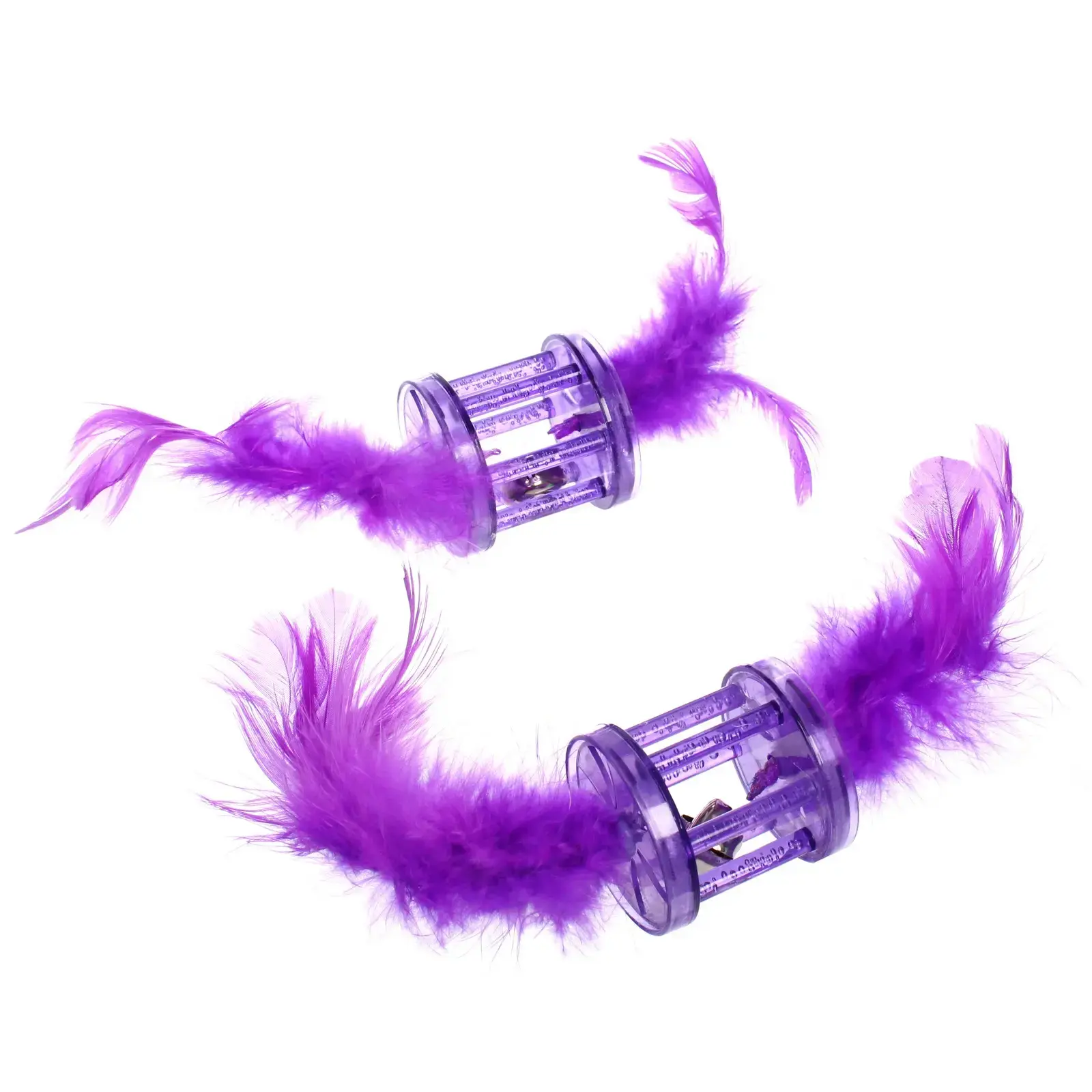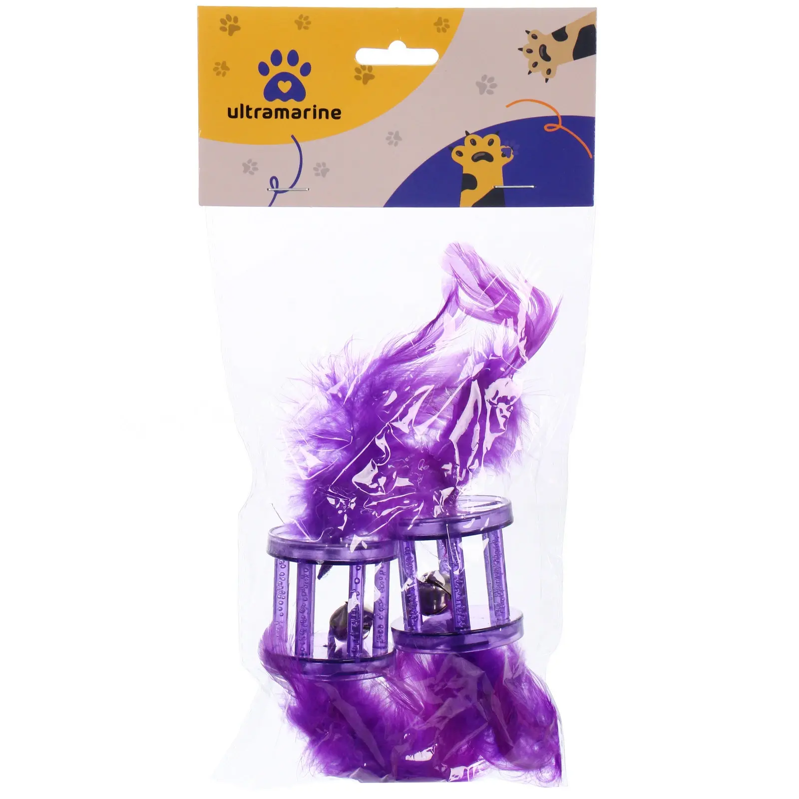 Игрушка для кошек с бубенчиком и перьями 4см, фиолетовая, 2 шт