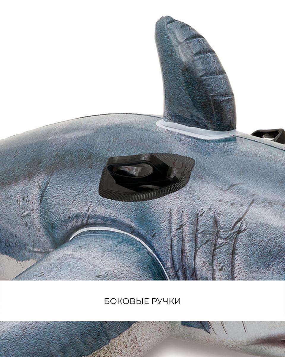 Идеально подходит для детей старше 3 лет. Легко надувается и сдувается, что делает её удобной для хранения и транспортировки. Благодаря устойчивому материалу, акула прослужит не один сезон.