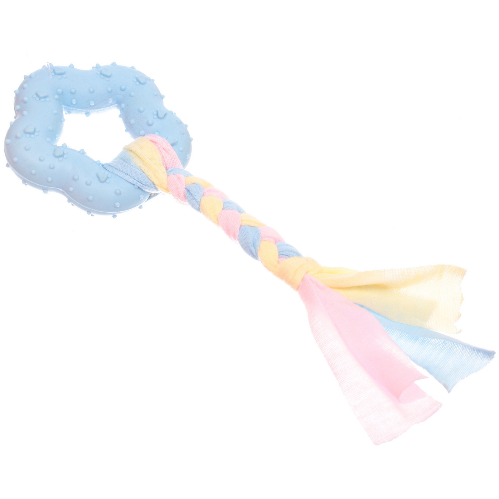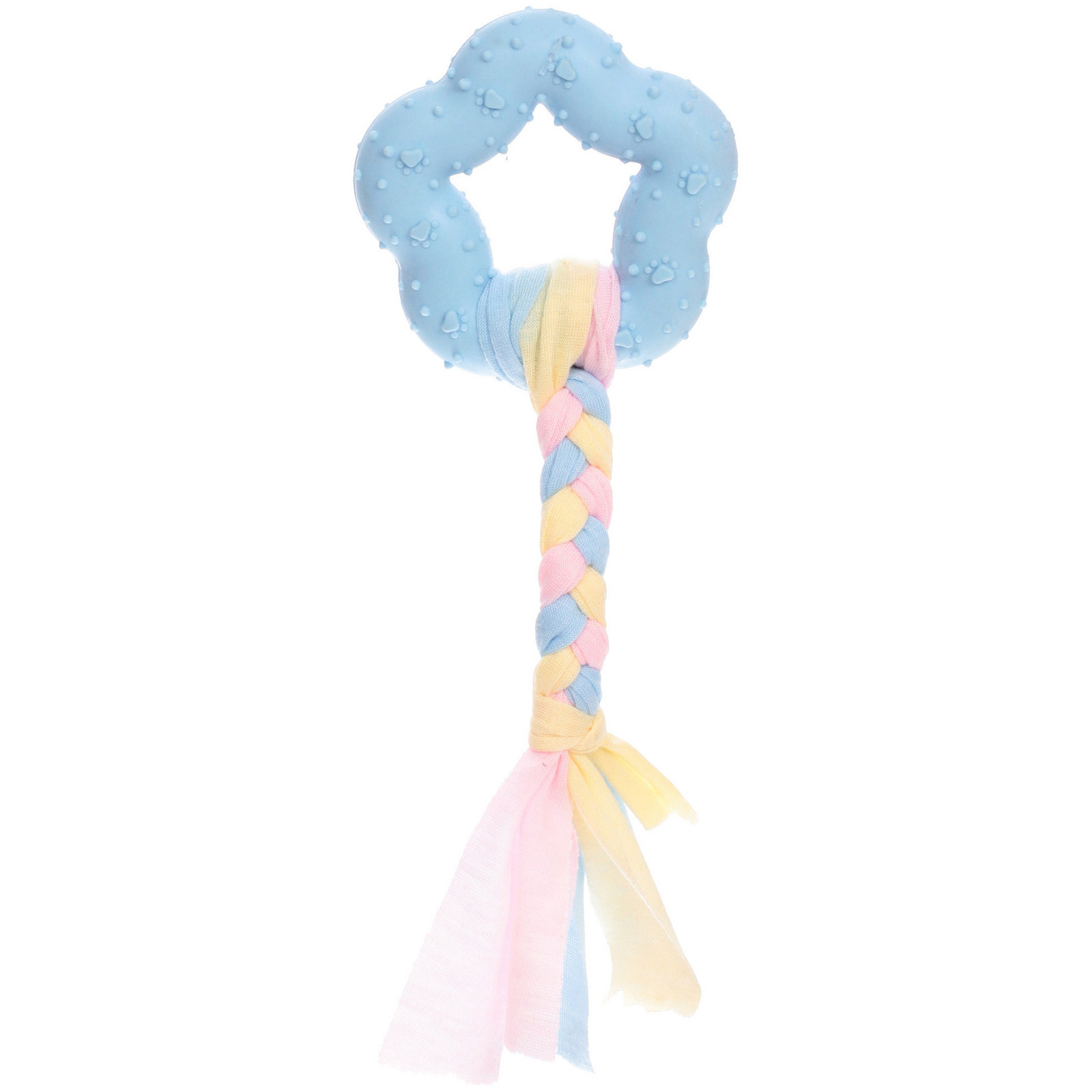 Почему стоит выбрать именно эту игрушку? Во-первых, она изготовлена из прочного полиэстера и резины, что обеспечивает долговечность и надежность. Во-вторых, текстурированная поверхность игрушки способствует массажу десен, что особенно важно для здоровья зубов вашей собаки. В-третьих, плетеный хвостик из пастельных оттенков добавляет дополнительный интерес во время игры.