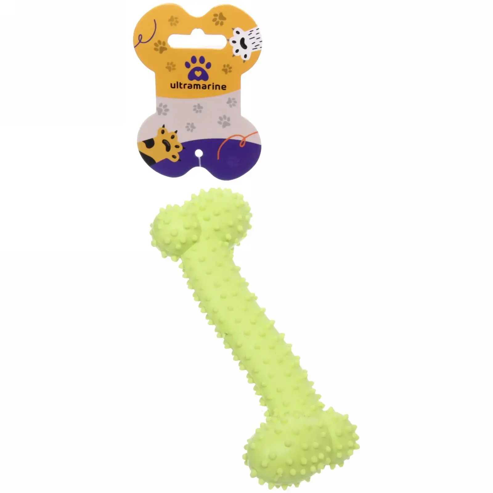 Игрушка изготовлена из качественной резины, устойчивой к повреждениям, и подходит для собак любого размера. Яркий зеленый цвет привлекает внимание, а размер 16*5,5 см удобен для захвата. Она сочетает в себе долговечность, практичность и пользу для здоровья питомца.