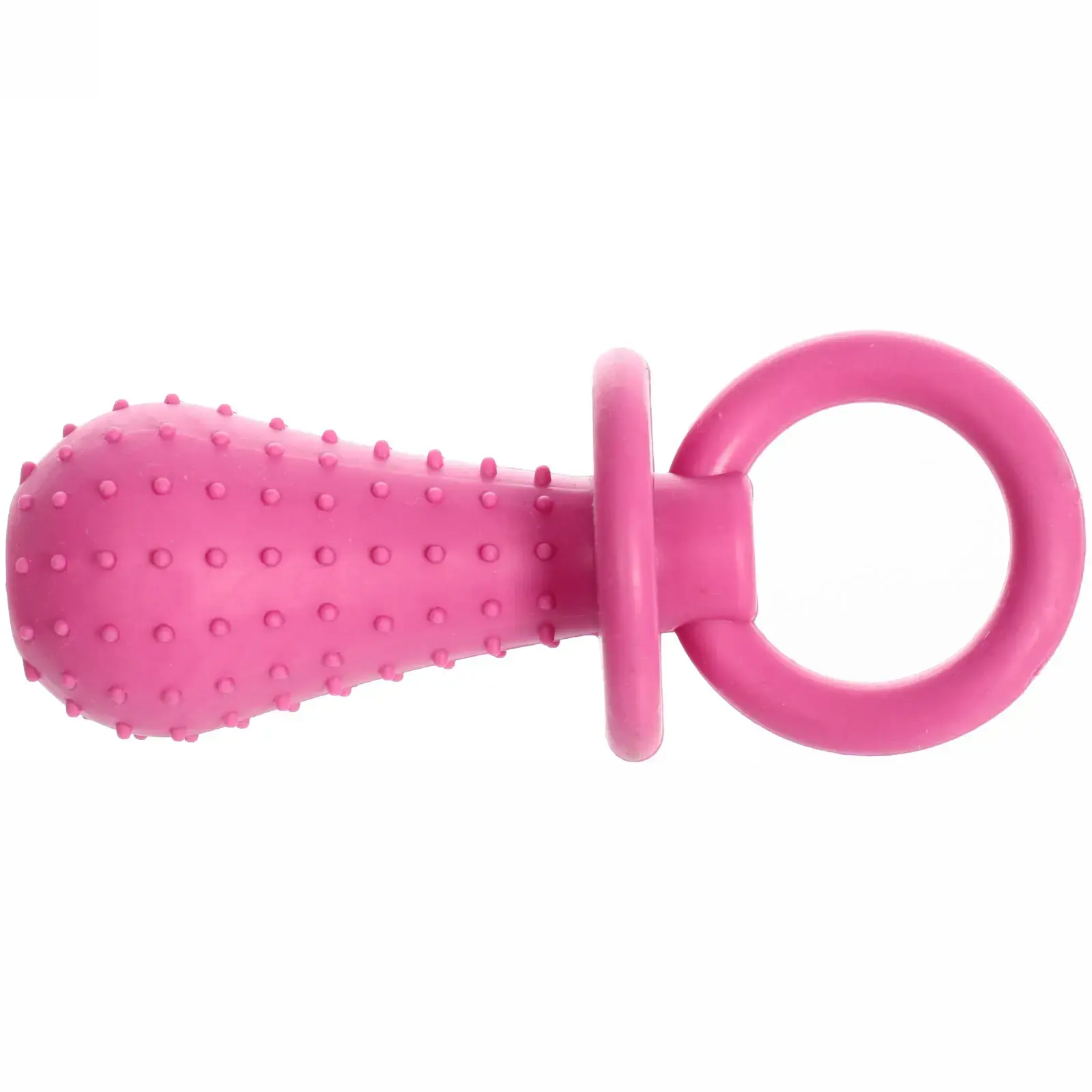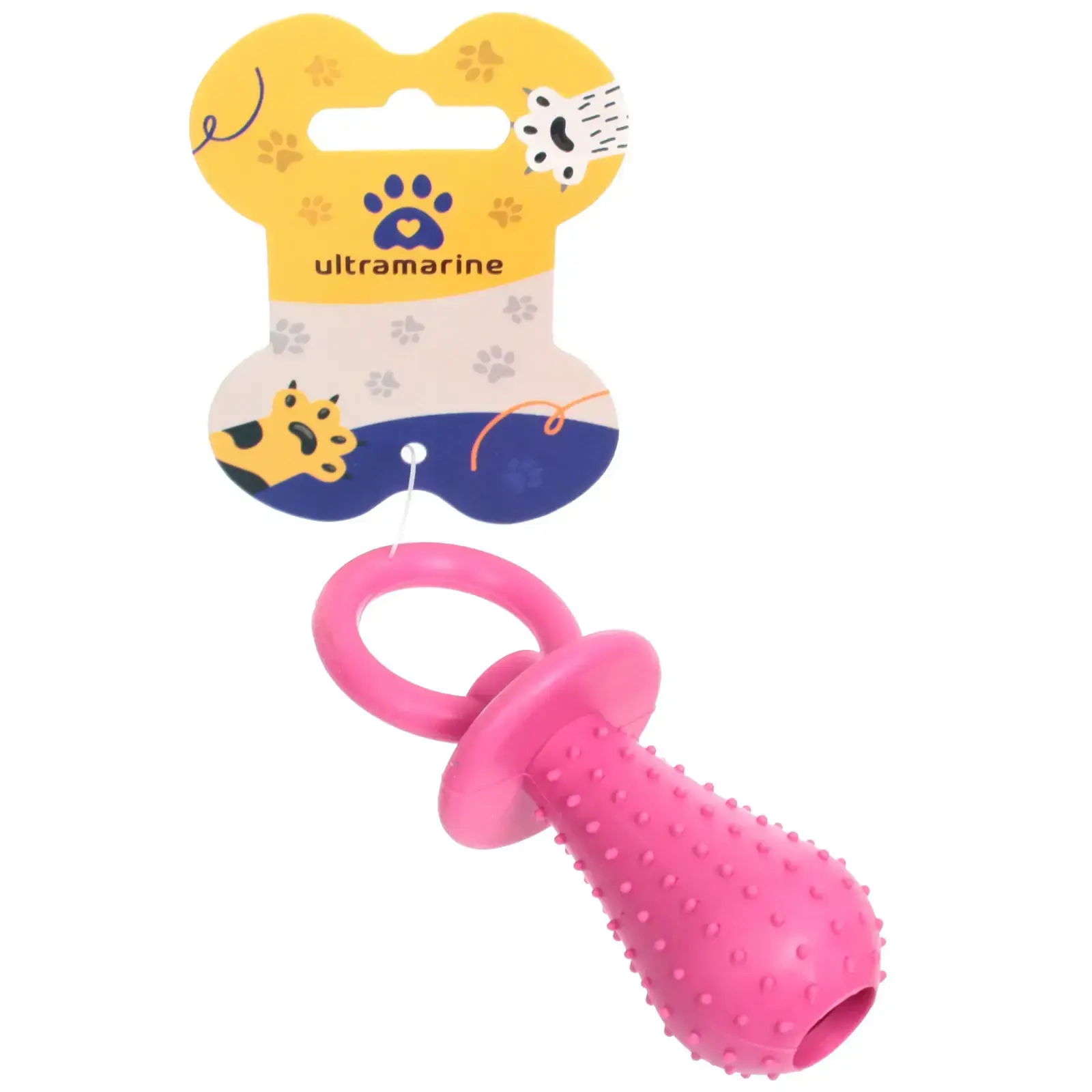 Размер игрушки составляет 9,5 см, что делает её компактной и удобной для игры. Ярко-розовый цвет и текстурированная поверхность с шипами добавляют интереса и делают игру более увлекательной. «Bubble gum-Соска» — это не просто игрушка, а отличный способ поддерживать активность и здоровье вашего любимца.