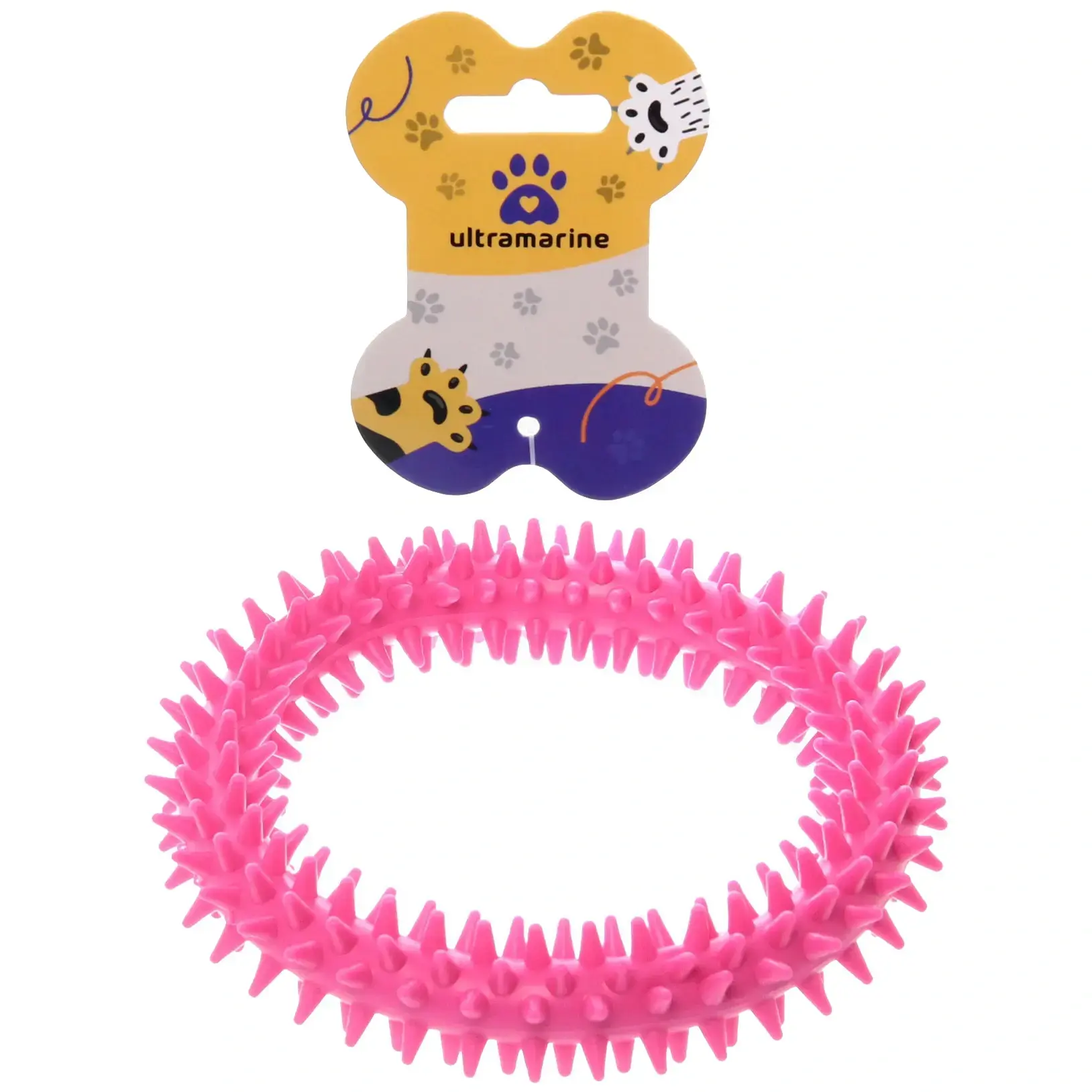 Подарите своему питомцу здоровье и радость с игрушкой 'Кольцо - Зубочистка'. Эта ярко-розовая игрушка не только развлекает, но и заботится о зубах вашей собаки. Мягкий пластик с рельефной поверхностью в виде шипов обеспечивает бережную чистку зубов и массаж десен, что особенно важно для щенков в период смены зубов.
