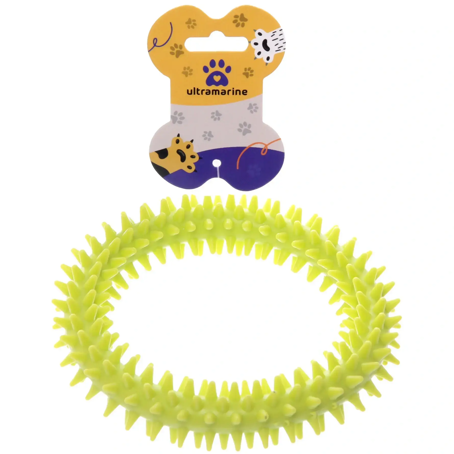 Подарите своему питомцу радость и здоровье с игрушкой «Кольцо - Зубочистка». Эта уникальная игрушка не только развлекает, но и заботится о здоровье зубов вашей собаки. Ярко-зеленый цвет и рельефная поверхность с шипами делают её привлекательной и функциональной. Игрушка помогает в чистке зубов и бережном массаже десен, что особенно важно для щенков в период смены зубов.