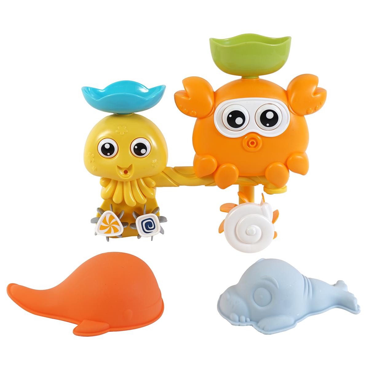 Практические подробности: комплект состоит из поливочной станции с элементами, 2 игрушек морской темы и креплений. Материалы — пластик и ПВХ — придают легкость и долговечность. Размеры игрушек и станции позволяют комфортно размещать их в любой ванной или игровом пространстве, создавая море радости и обучения для малыша.