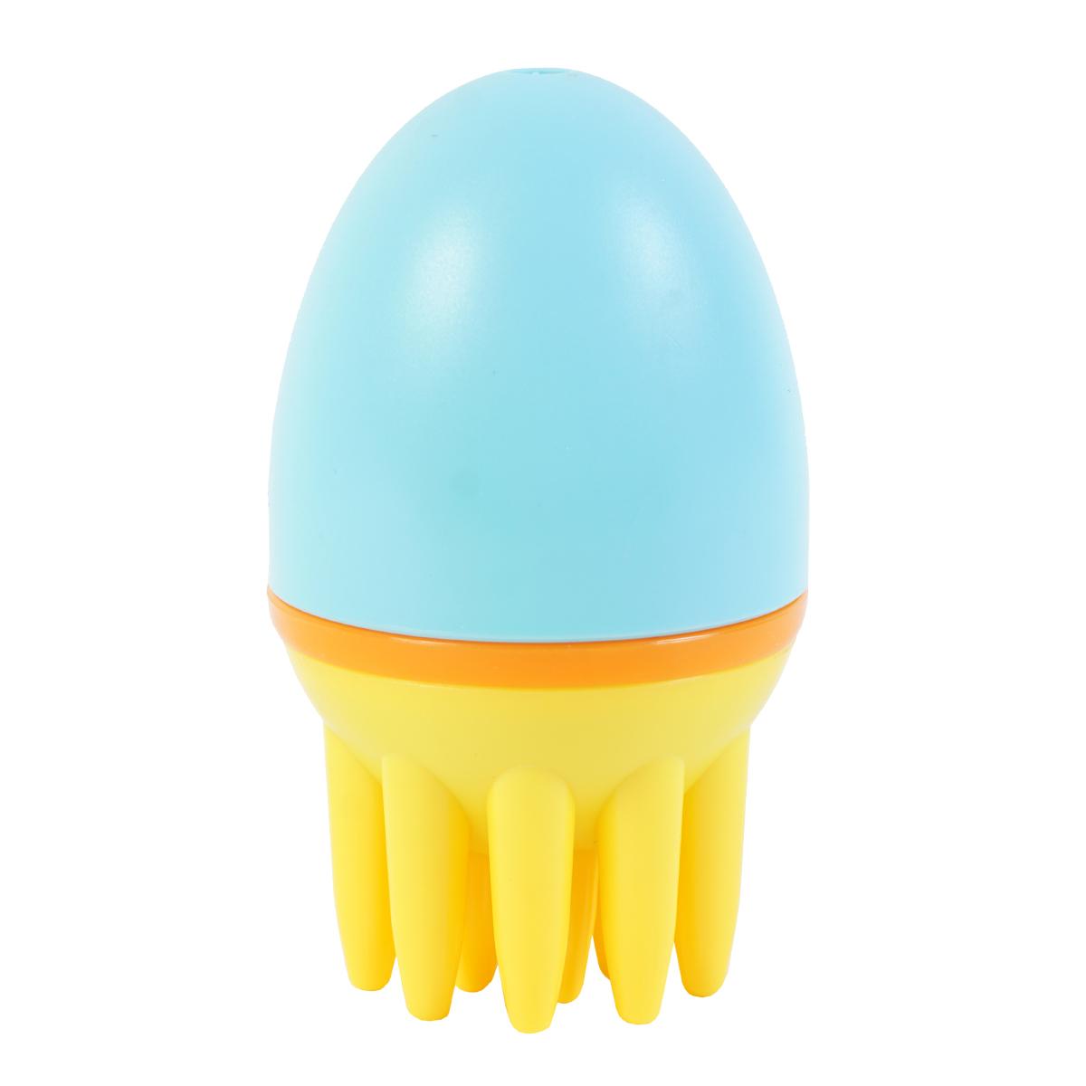 Игрушка имеет округлую форму, напоминающую яйцо, с выступающими элементами, которые могут использоваться для массажа или стимуляции. Яркая цветовая гамма: верхняя часть голубая, нижняя часть желтая с оранжевой полосой, делает ее привлекательной для детей. Размер игрушки составляет 15 см, что идеально подходит для маленьких ручек. Не упустите возможность сделать купание вашего ребенка веселым и познавательным!