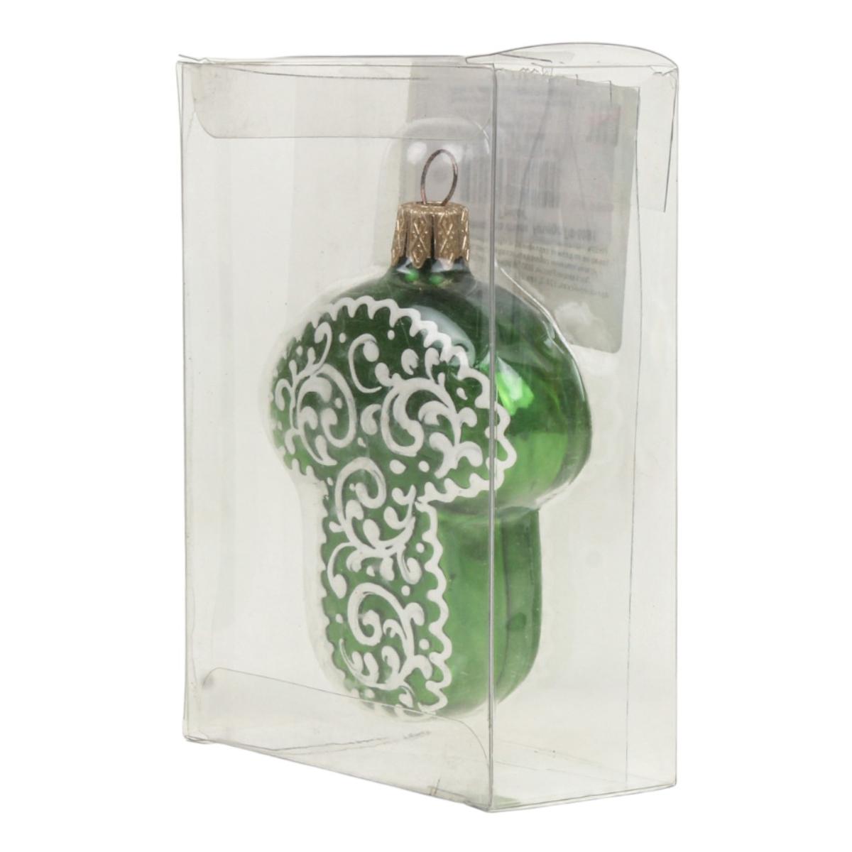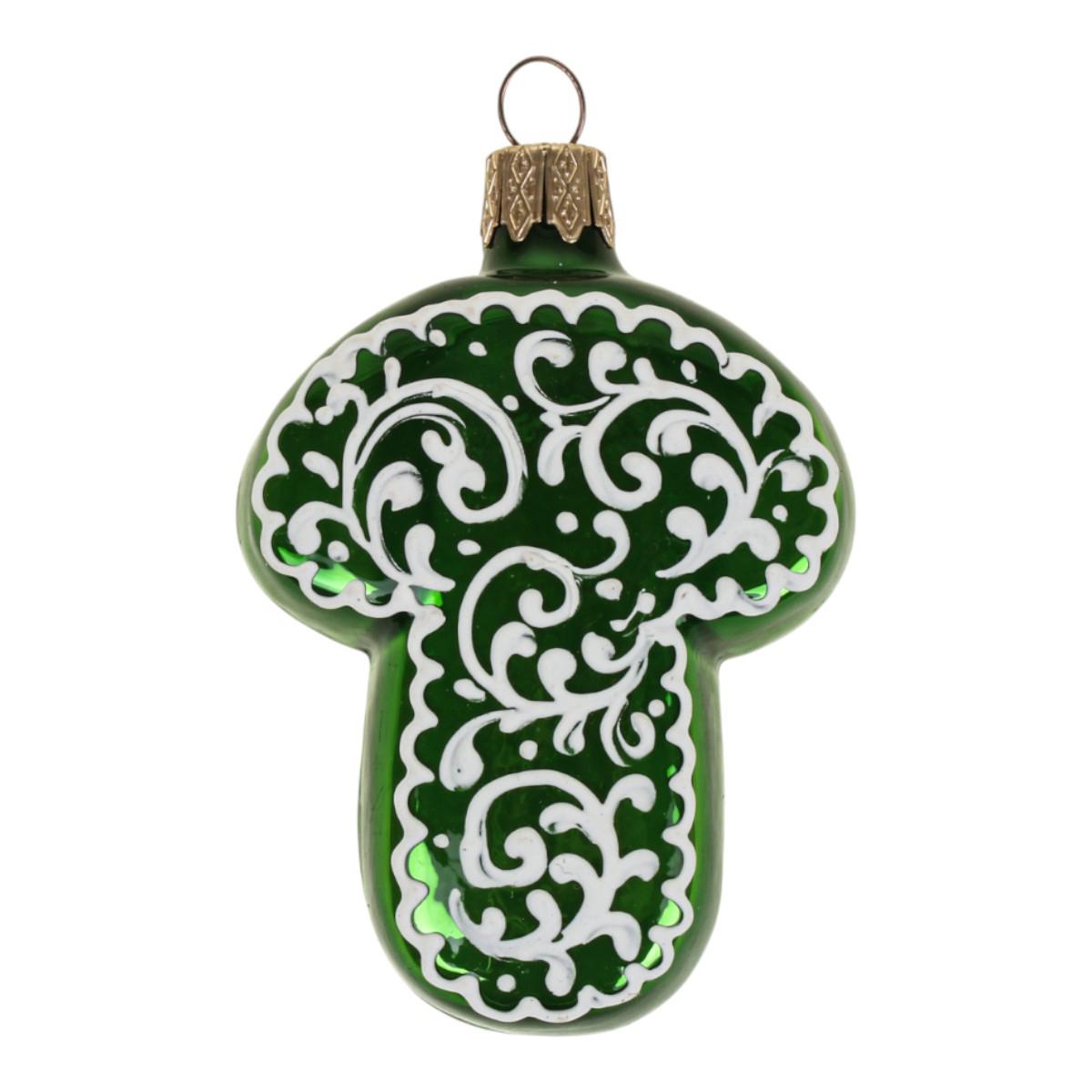 Стеклянная елочная игрушка "Грибок" — классическое украшение с изящным узором