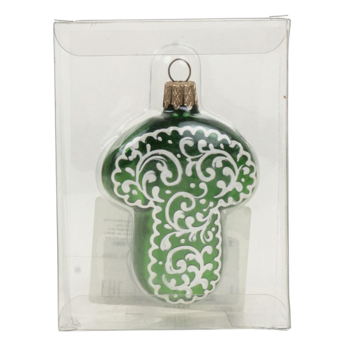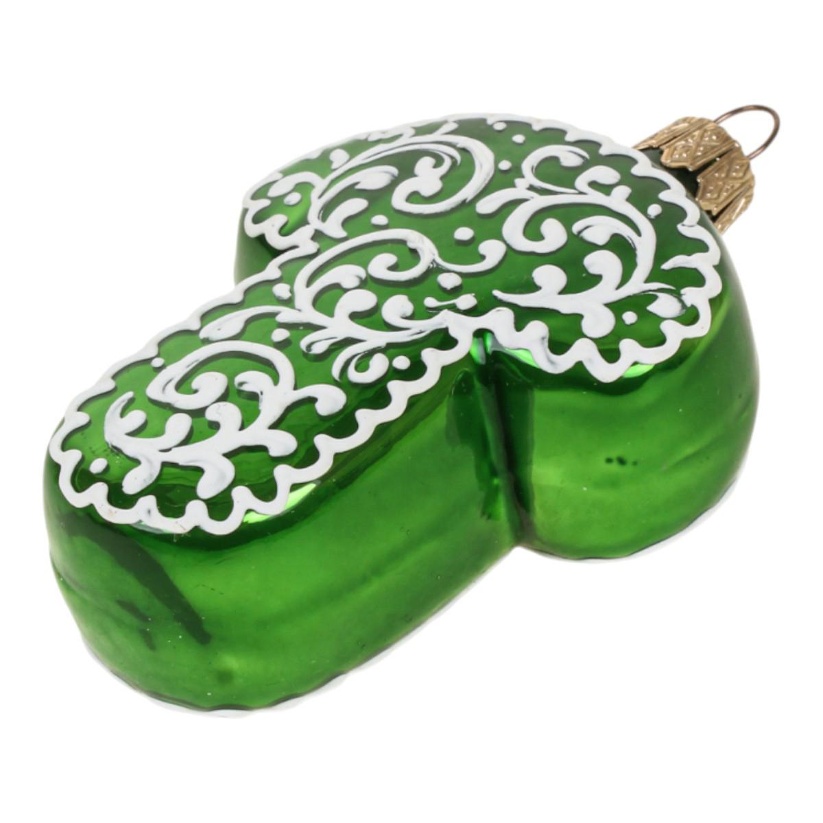 - Высокое качество материалов — игрушка изготовлена из тонкого стекла, которое обеспечивает легкий вес, полупрозрачность и красивое преломление света. Глянцевая поверхность насыщенного зеленого цвета выглядит празднично и нарядно.
