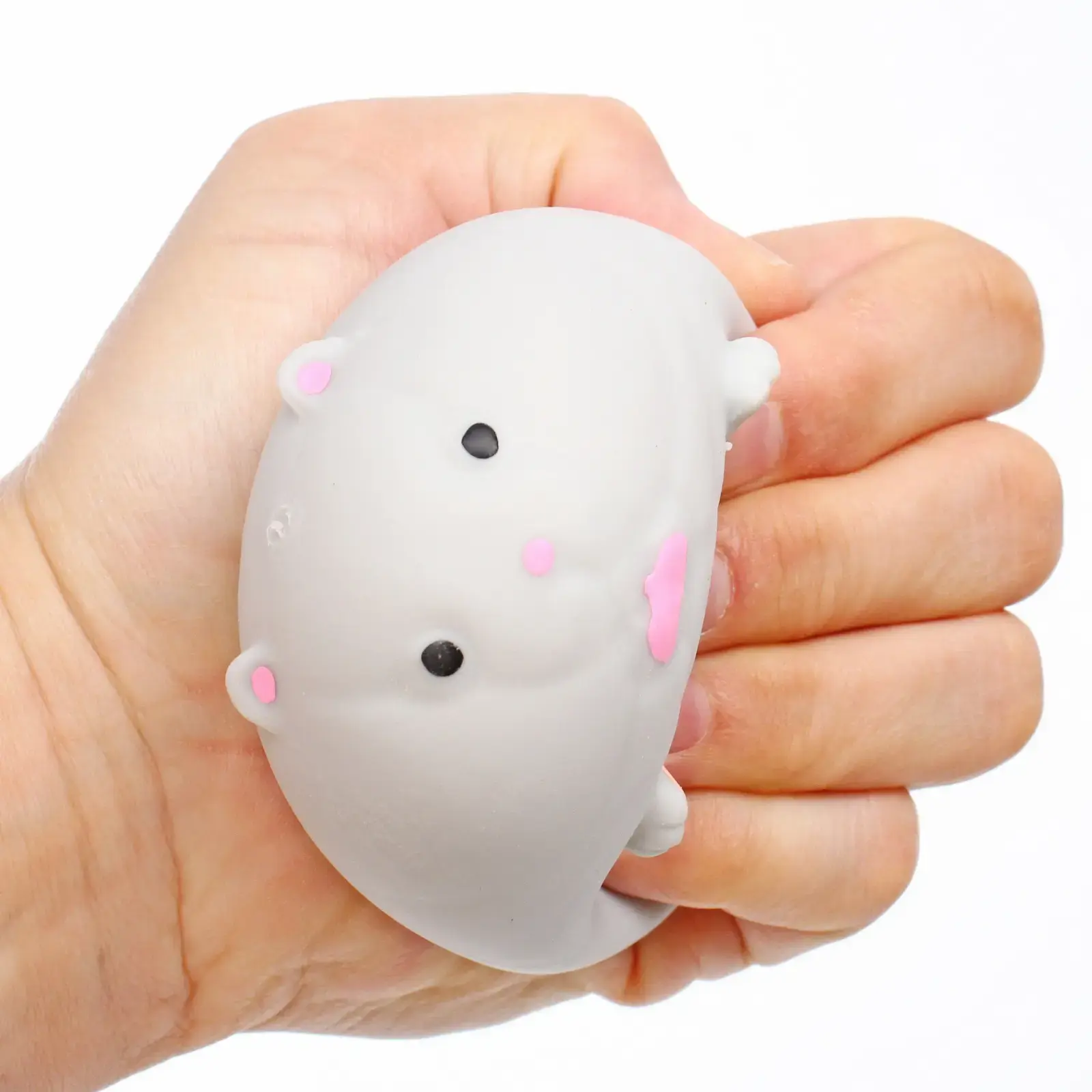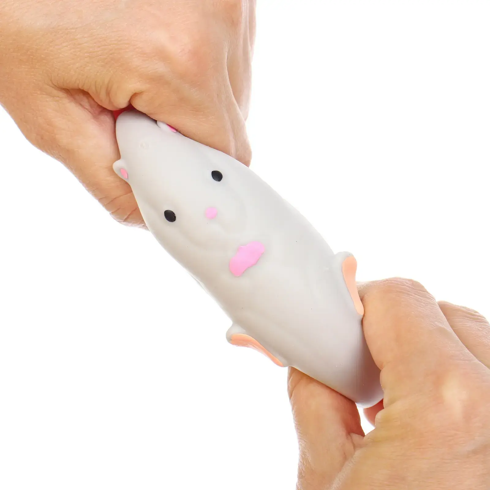 Игрушка повторяет анатомию хомяка с округлыми щечками, аккуратными лапками и выразительными глазками. Розовые акценты на носике и ушках добавляют реалистичности образу. Мягкие края и гладкая поверхность предотвращают дискомфорт при длительном использовании.