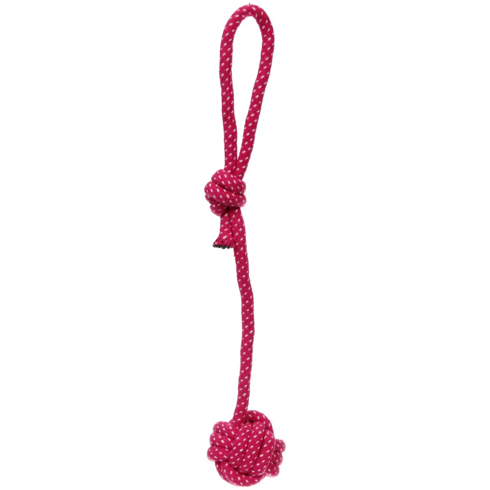 Длина веревки 27,5 см с плотным плетением из текстиля, что обеспечивает комфорт и безопасность при игре. Различные узлы по длине веревки помогают разнообразить игры и тренировки, превращая простой канат в увлекательную игрушку для здоровья вашего собаки.