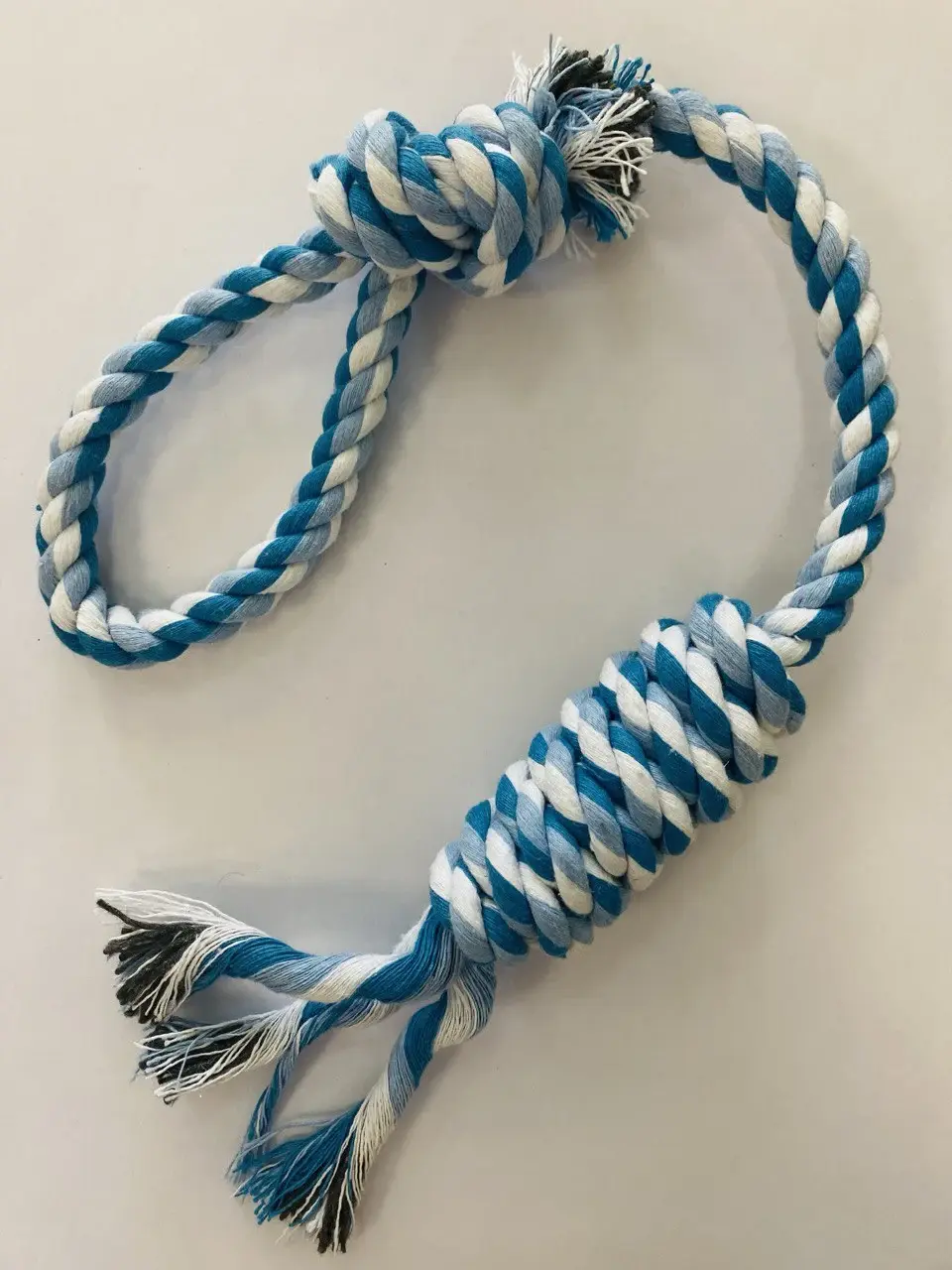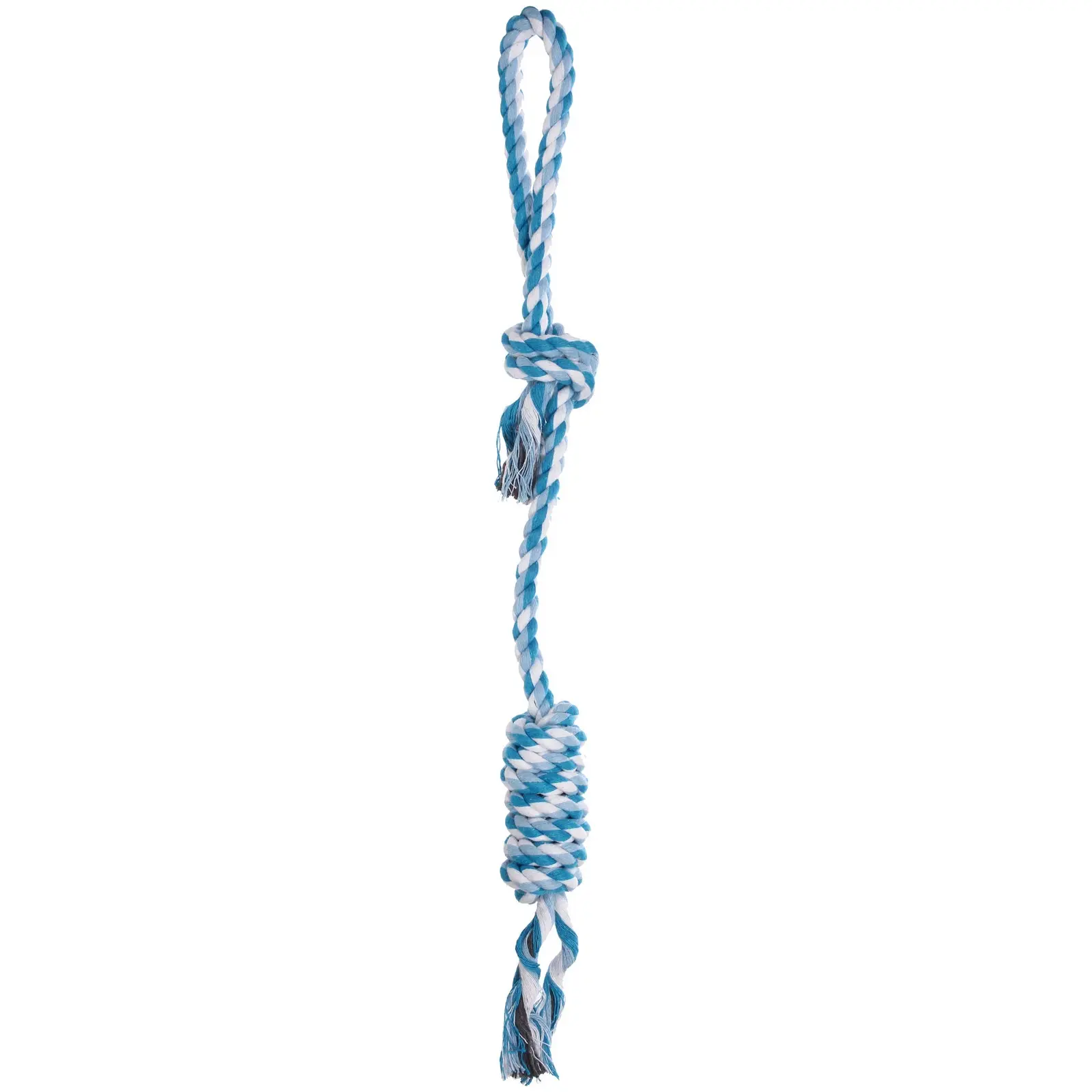 Благодаря высококачественному текстильному материалу, канат устойчив к повреждениям и безопасен для здоровья животного. Длина 47 см удобна как для маленьких, так и для более крупных собак. Яркий синий и голубой цвет добавляет эстетики и делает игрушку заметной в любой обстановке.