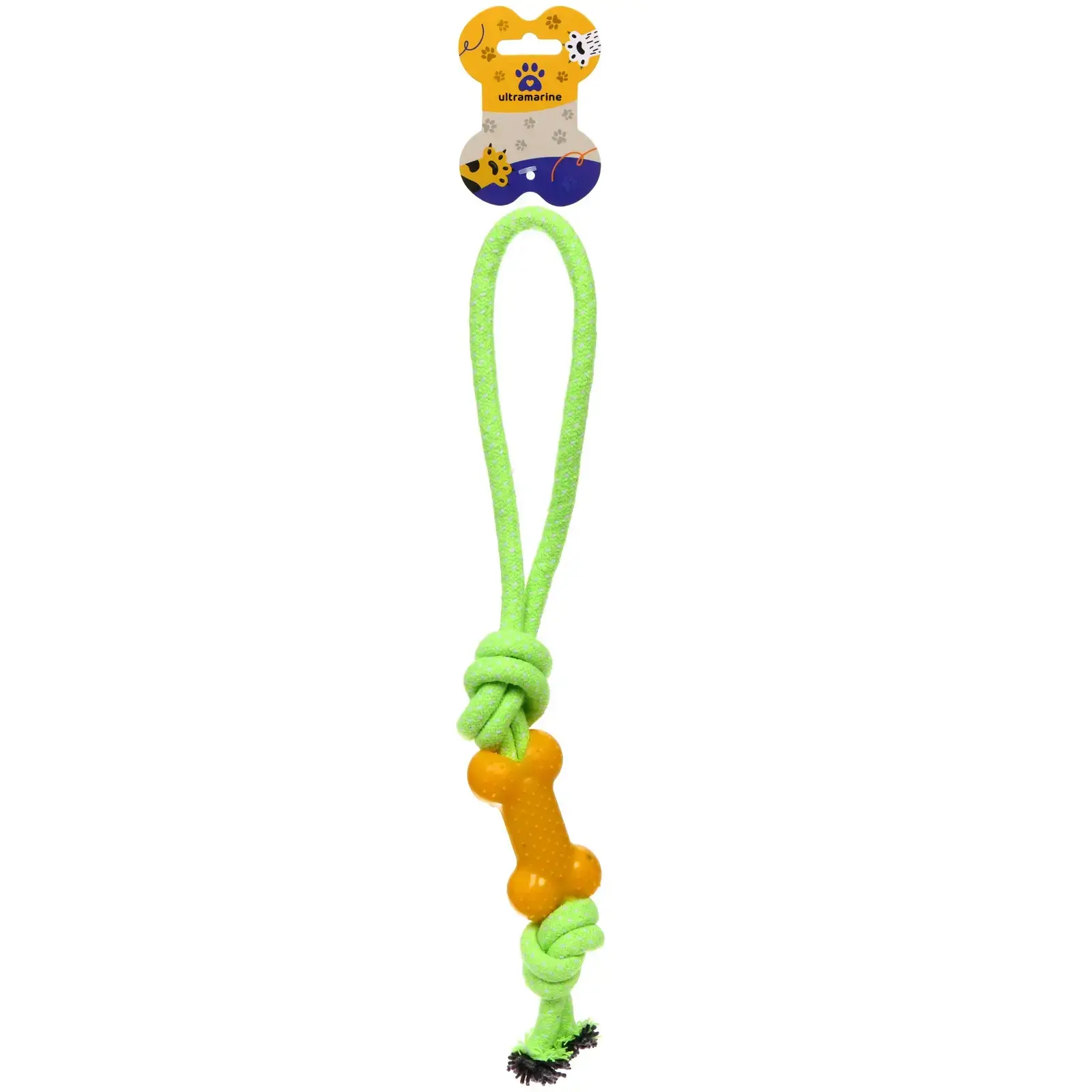 Игрушка выполнена из текстильных шнуров и пластиковых элементов, что обеспечивает долговечность и безопасность. Размер: длина около 30 см, материал — прочный синтетический шнур и пластиковая косточка. Такой комплект станет отличным покупательским решением, позволяющим питомцу оставаться активным и здоровым, а владельцу — наслаждаться временем вместе.