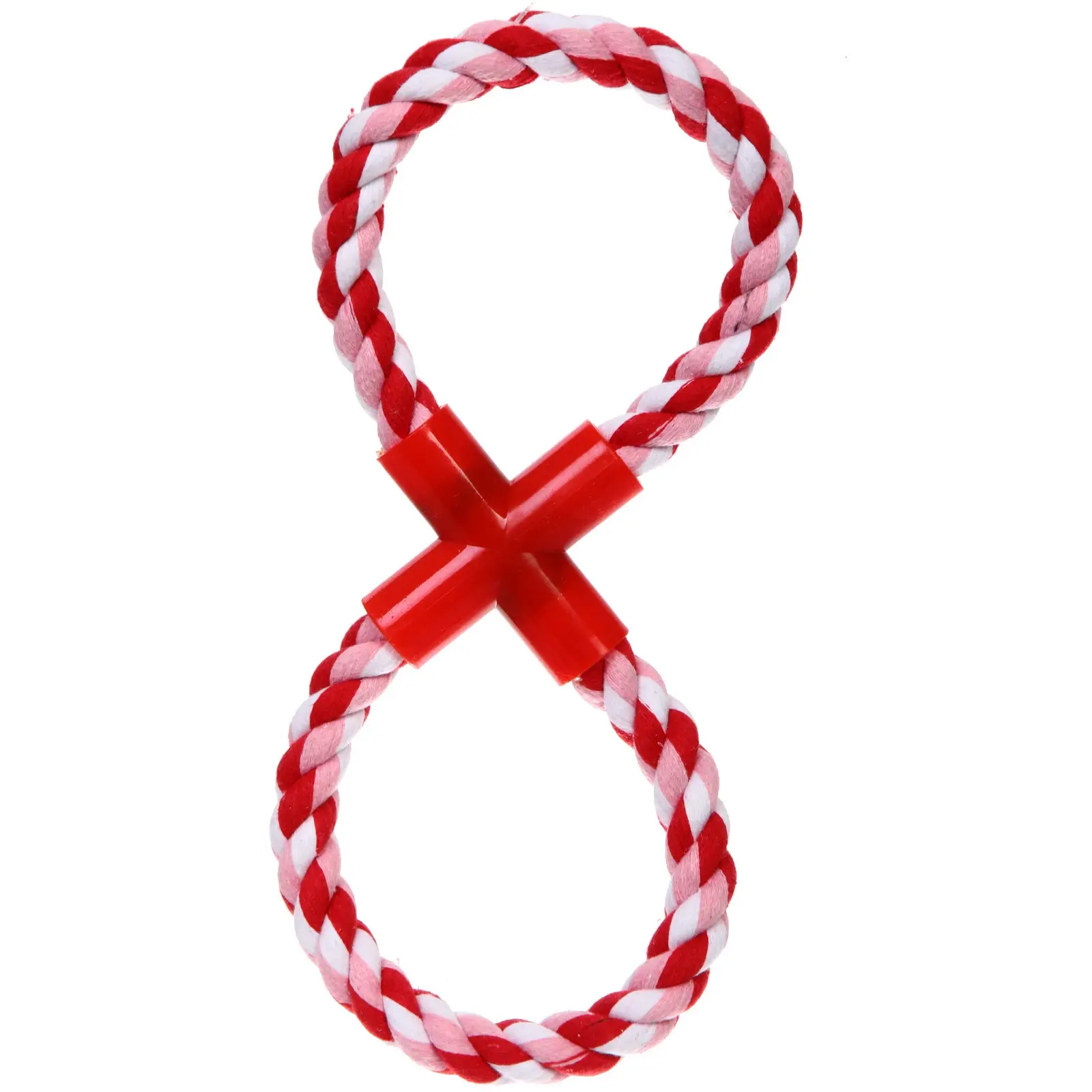 Этот плетеный канат из натурального хлопка идеально подходит для собак средних и крупных пород. Используйте его во время прогулок или в домашних играх в перетягивание. Удобная форма «8» с пластиковой крестовиной обеспечивает надежное удержание и комфорт при игре, даже острые зубы питомца будут в безопасности. Канат способствует укреплению зубов и десен, развивая двигательную активность питомца.