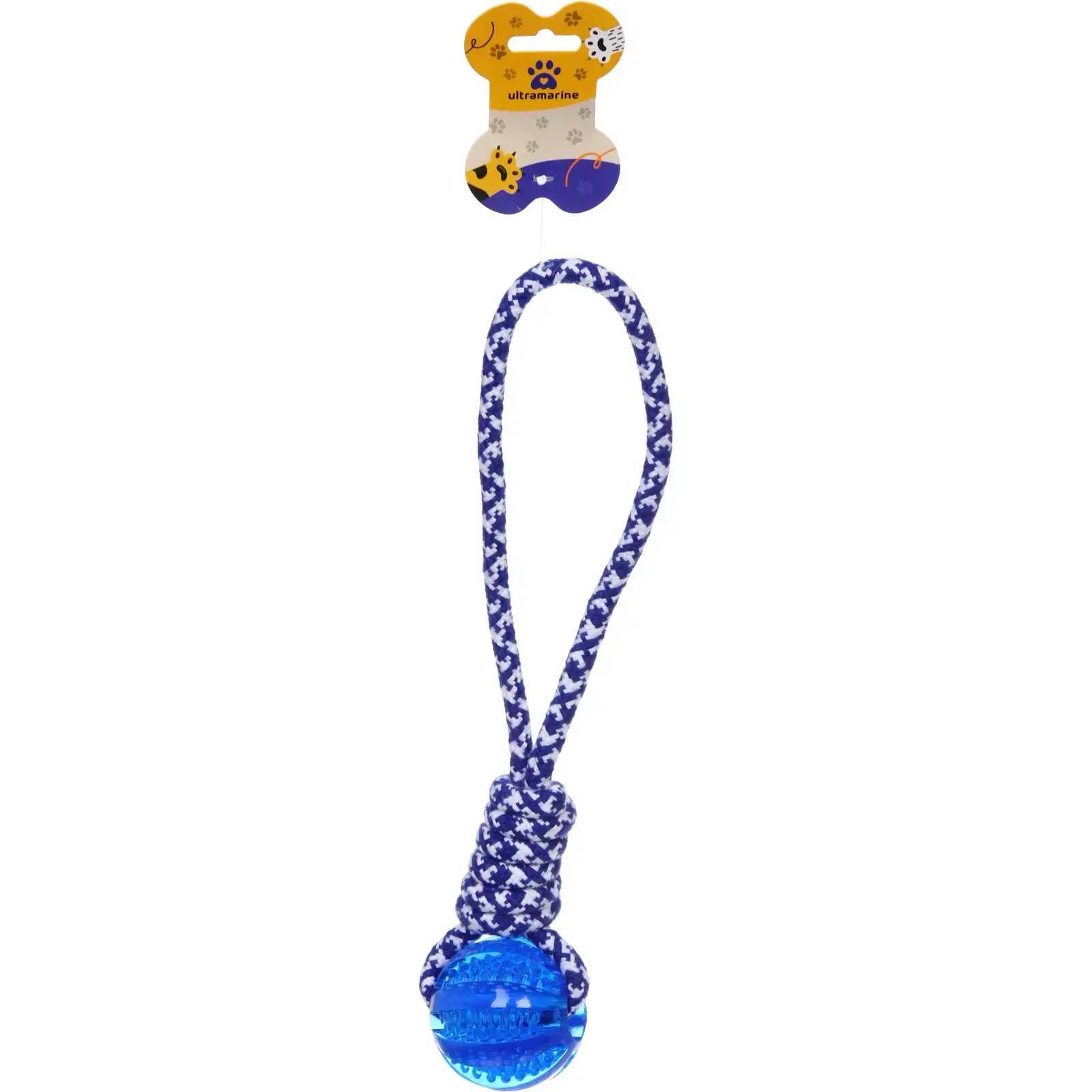 Игрушка имеет длину 34 см и выполнена из прочного текстиля и пластика. Мячик на канате имеет рифленую поверхность, что делает его удобным для захвата. Игрушка легкая, весит всего 110 грамм, что позволяет легко брать её с собой на прогулки. Не упустите возможность порадовать своего питомца качественной и интересной игрушкой!