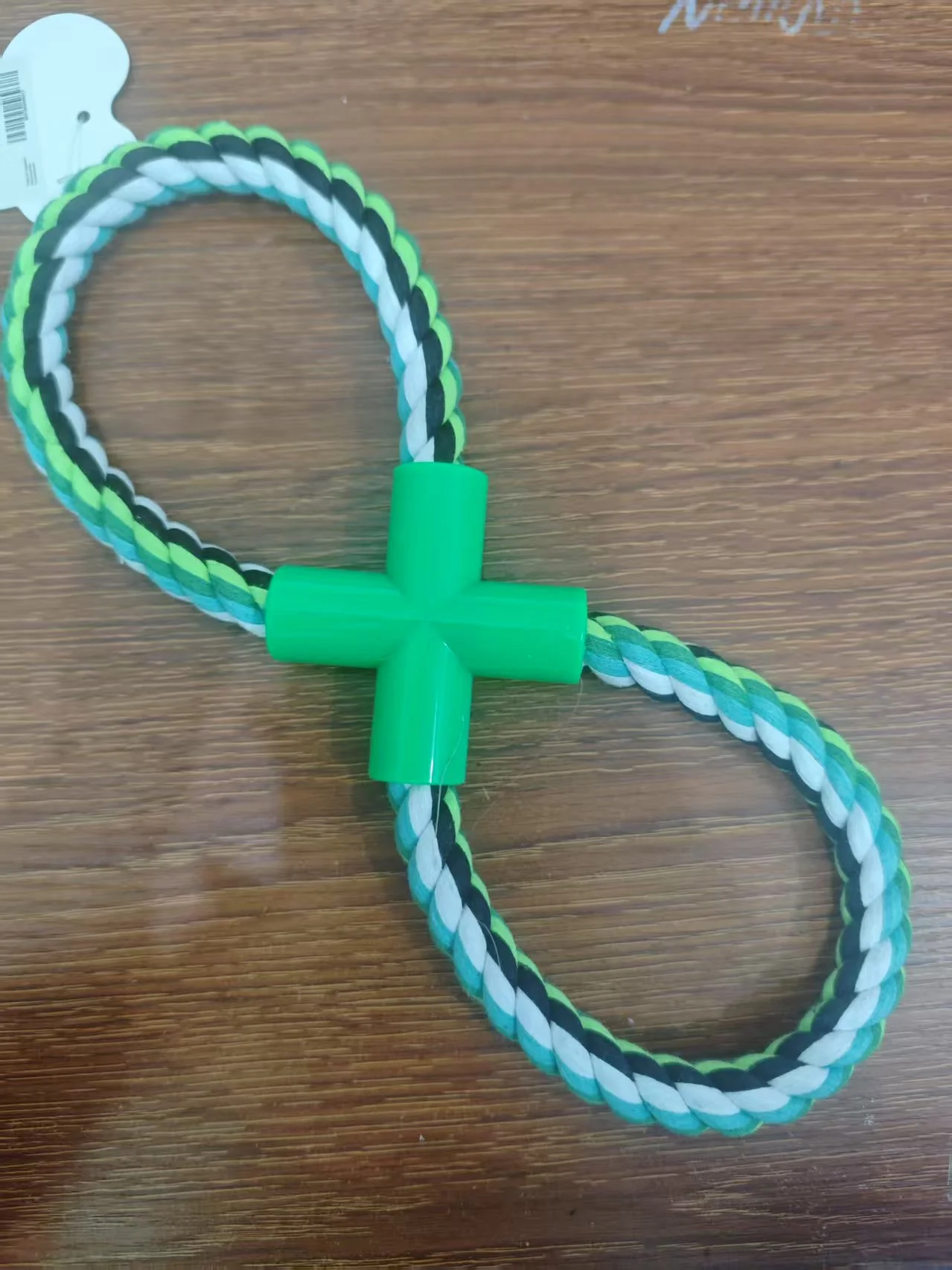 Игрушка изготовлена из прочного натурального хлопка, который выдерживает даже самых мощных питомцев. Пластиковая крестовина обеспечивает удобный захват и формирует характерную форму восьмерки, идеальную для перетягивания.